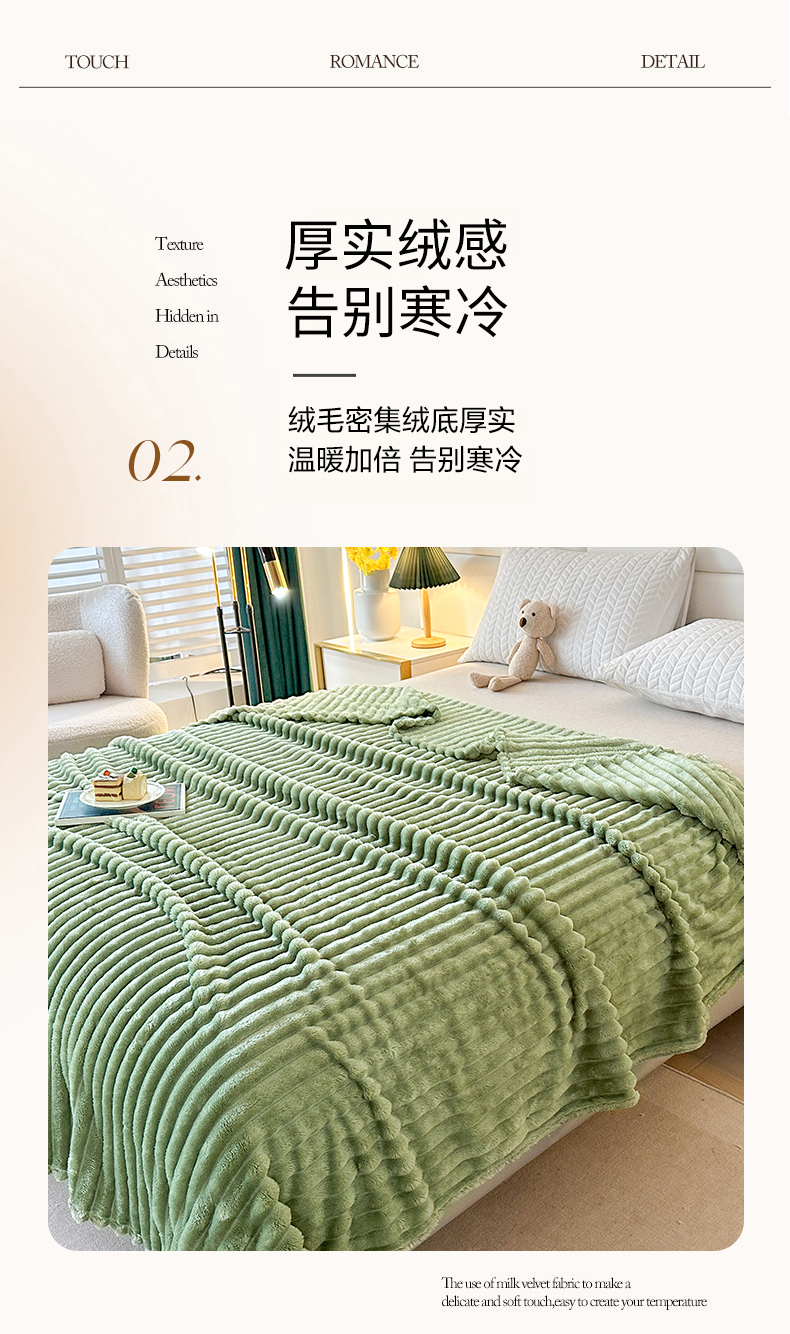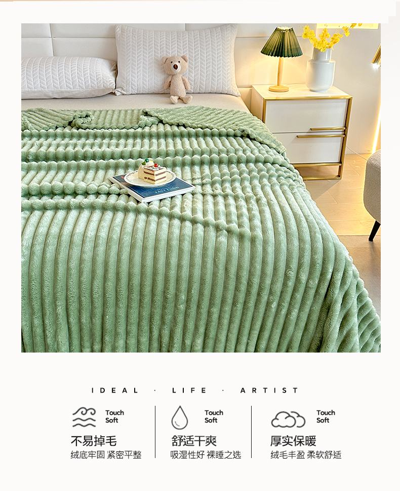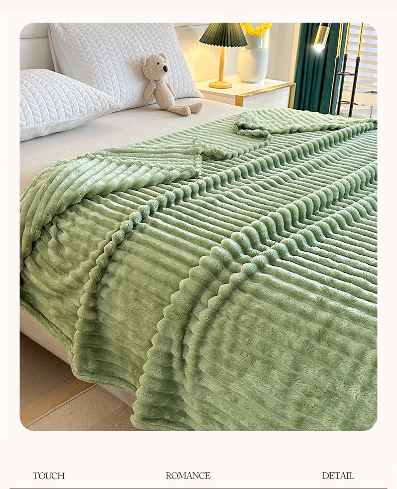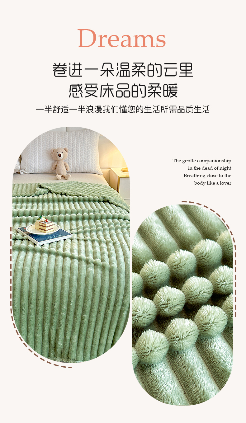 商品名称:芸锦豪 2024新款仿兔毛抽条毛毯-卷边款 绿色