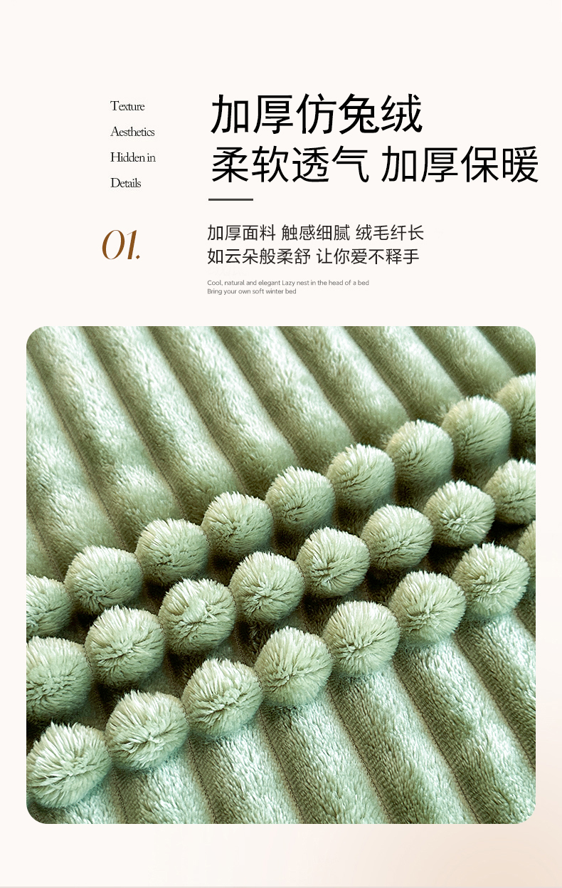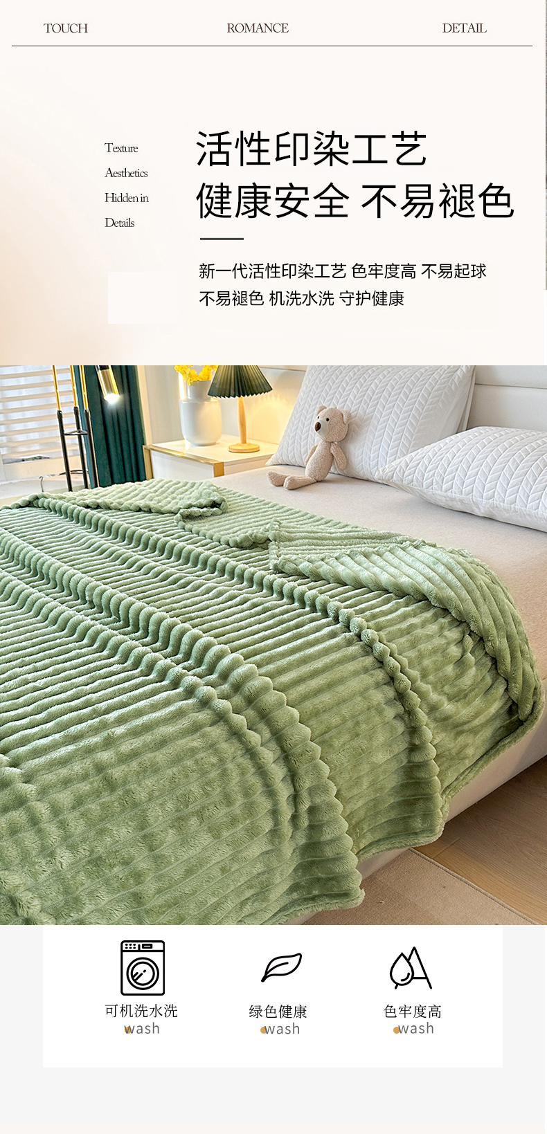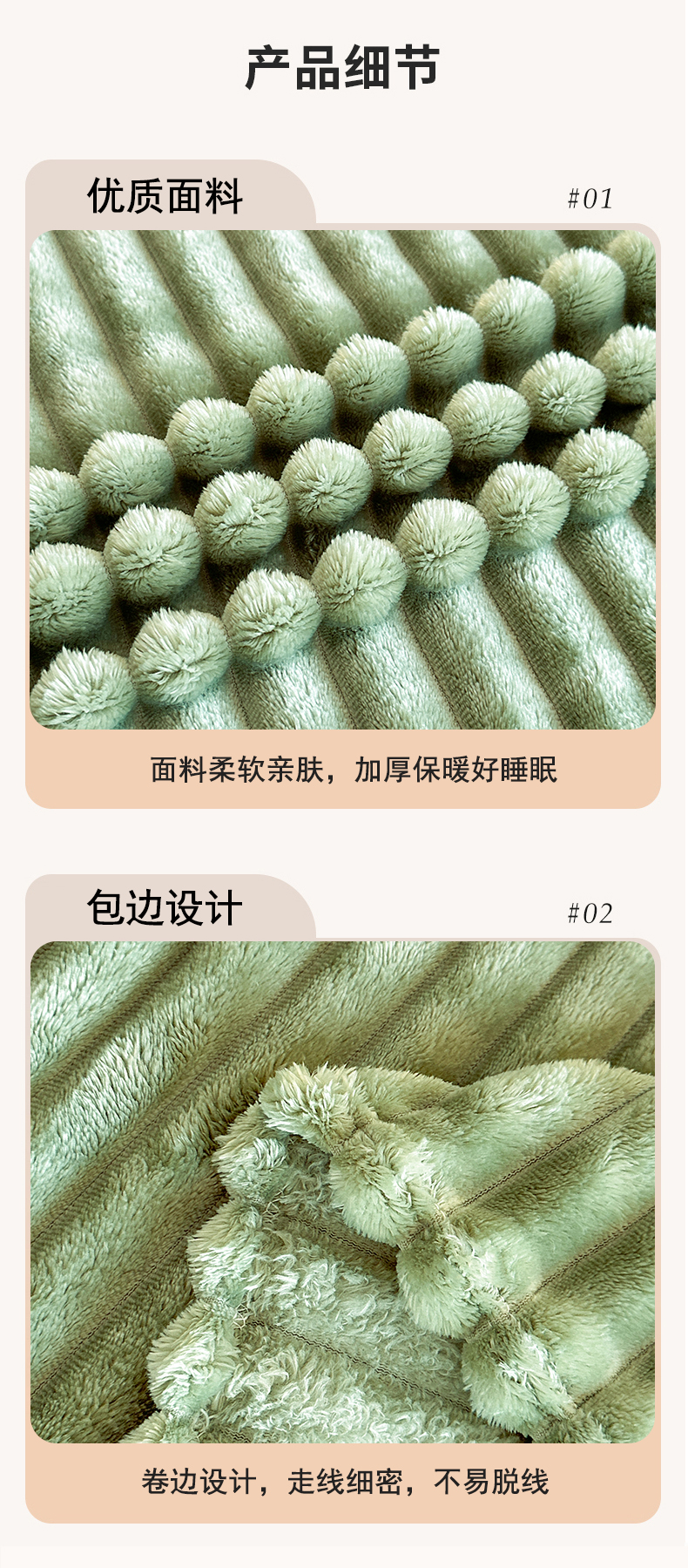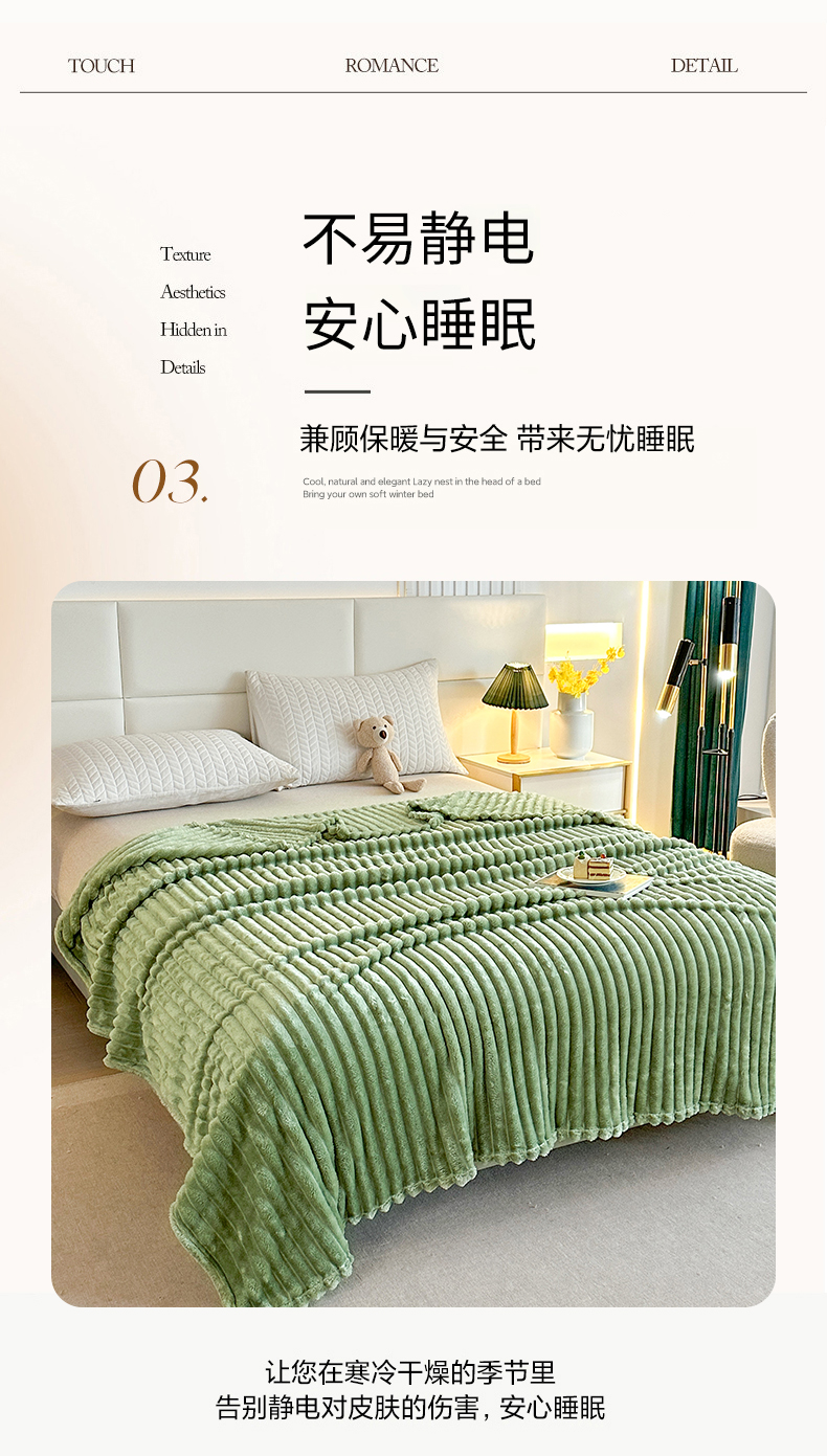 商品名称:芸锦豪 2024新款仿兔毛抽条毛毯-卷边款 绿色