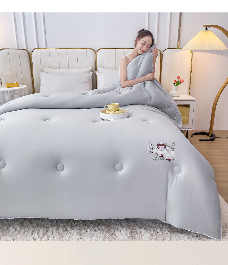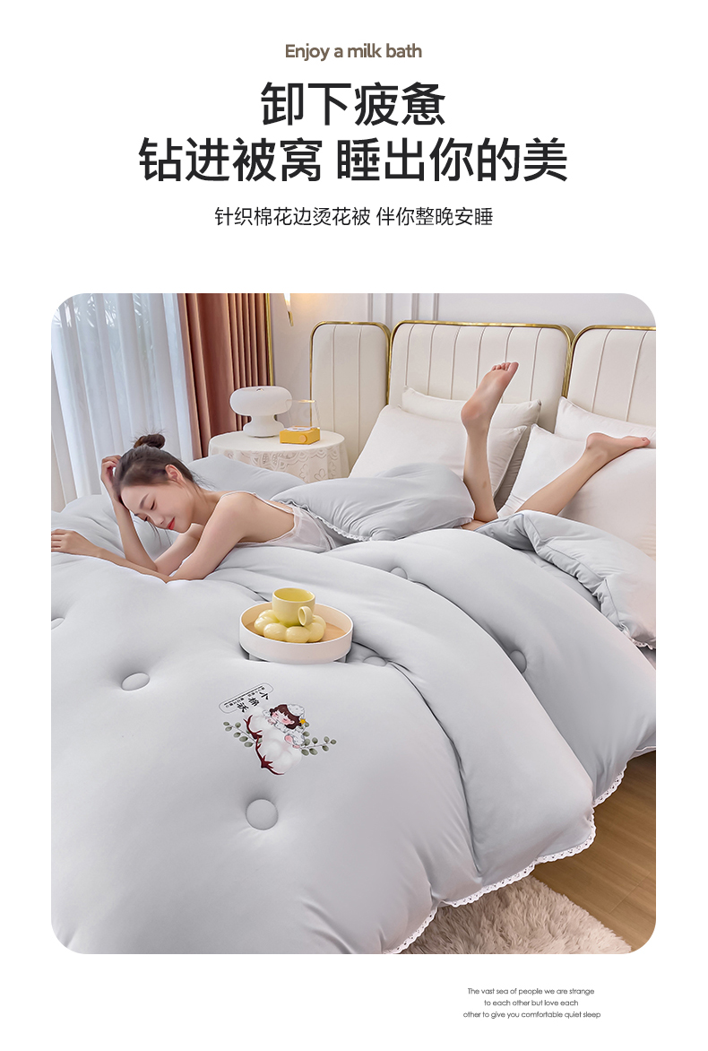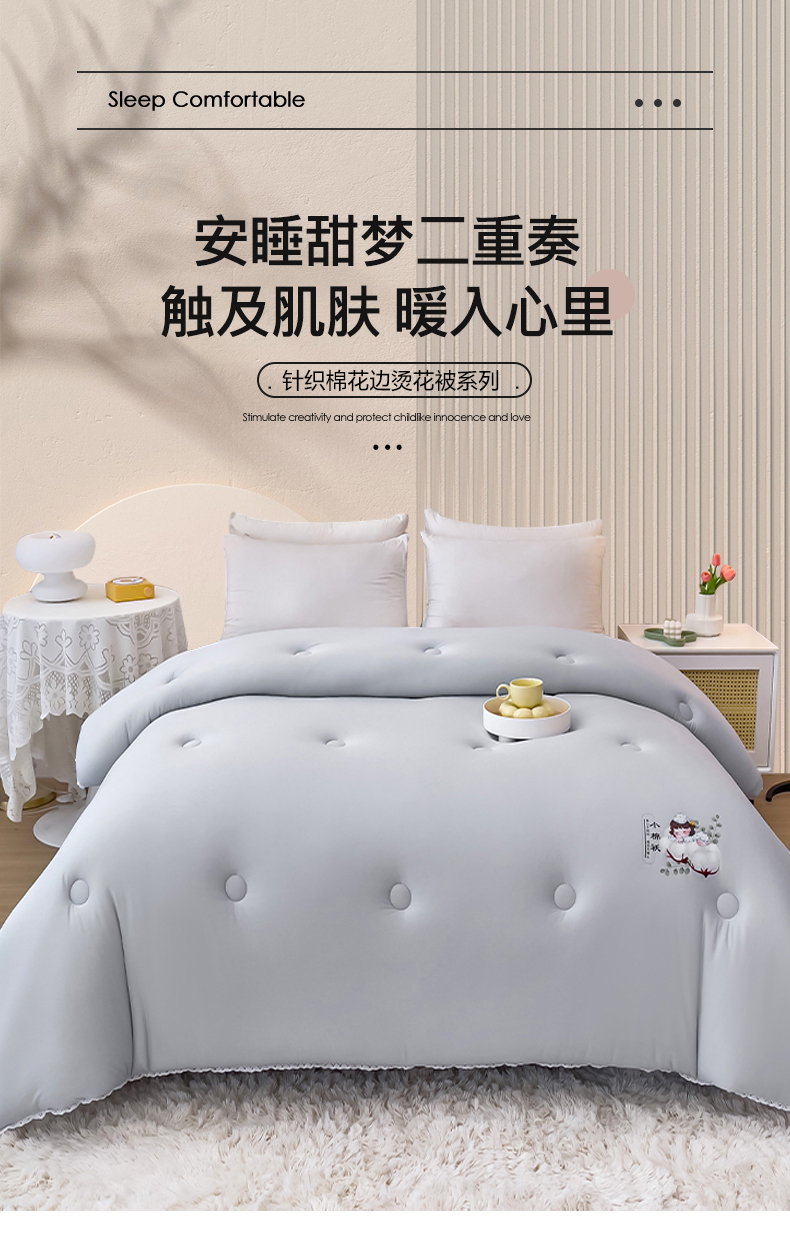 81号家纺 2024新款针织棉花边烫花被冬被被芯 时尚灰