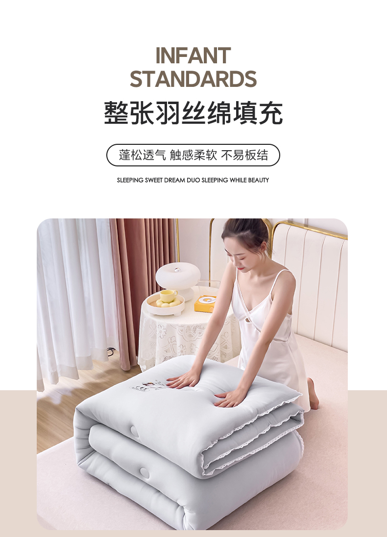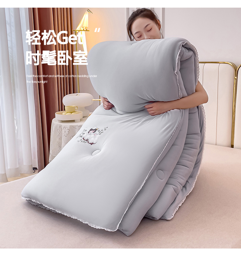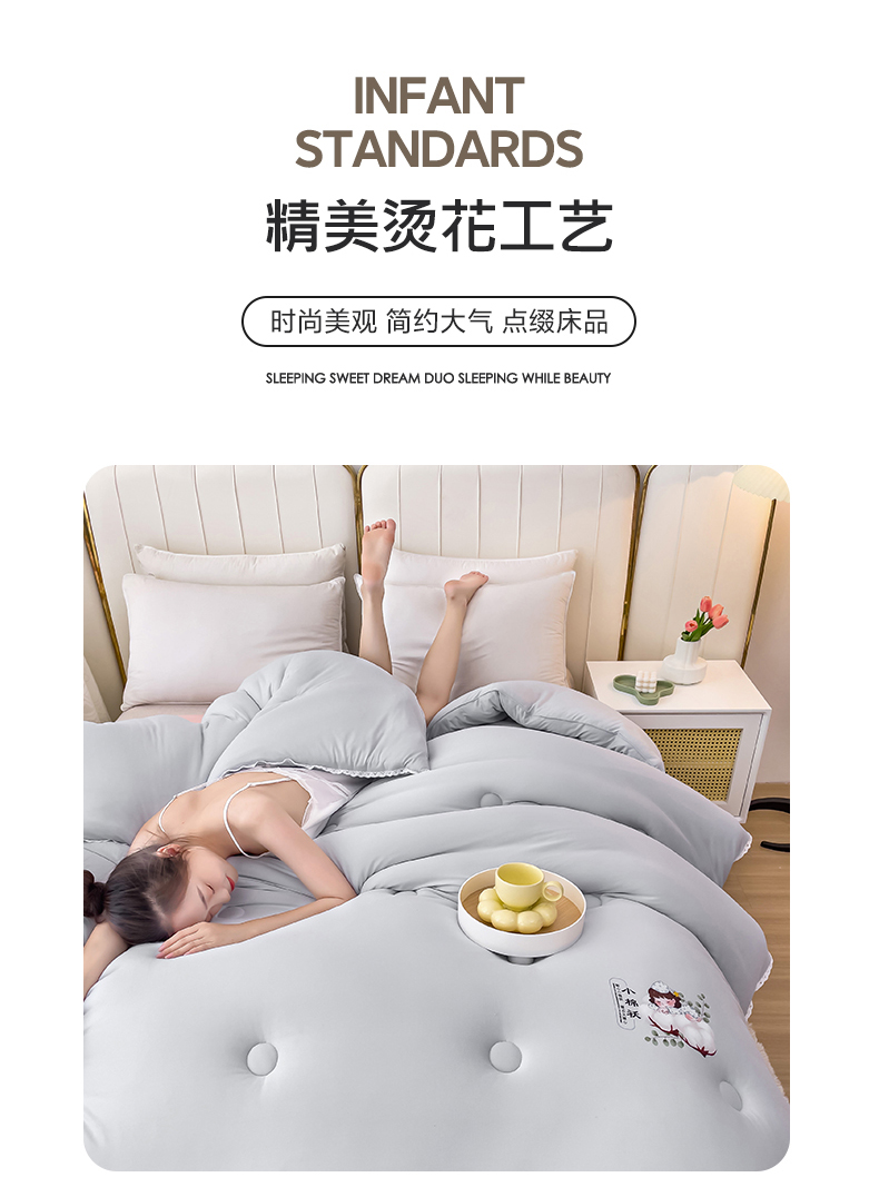 商品名称:81号家纺 2024新款针织棉花边烫花被冬被被芯 时尚灰
