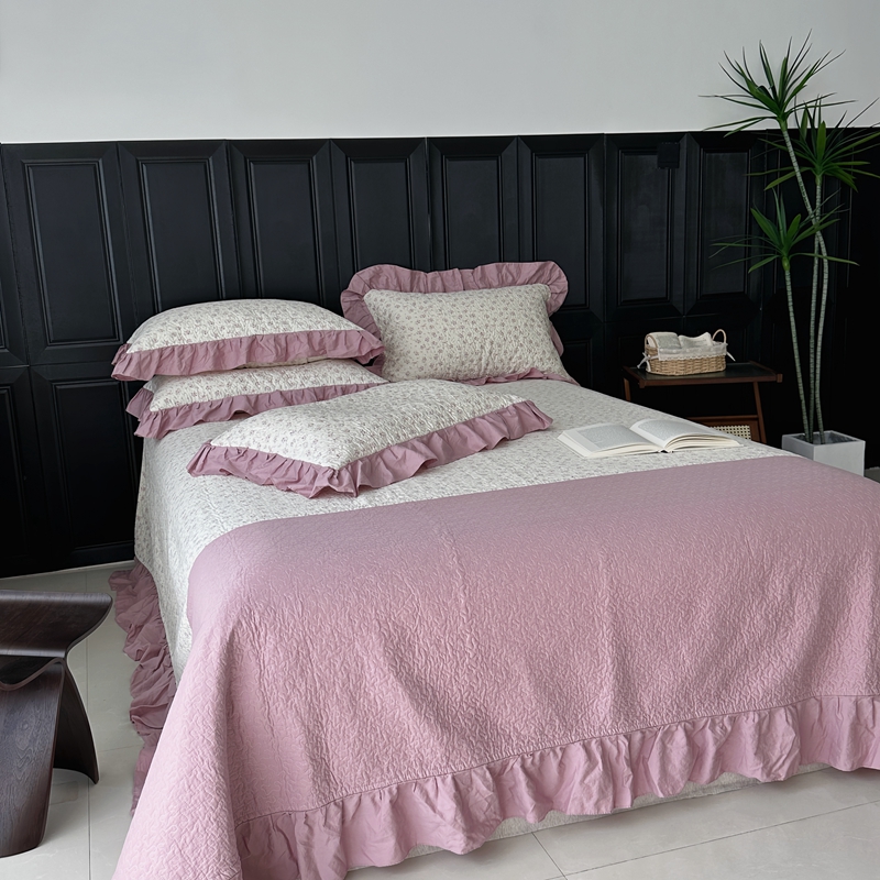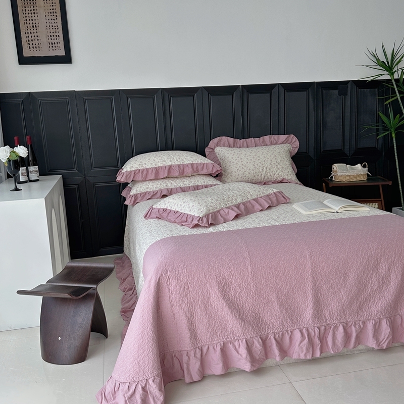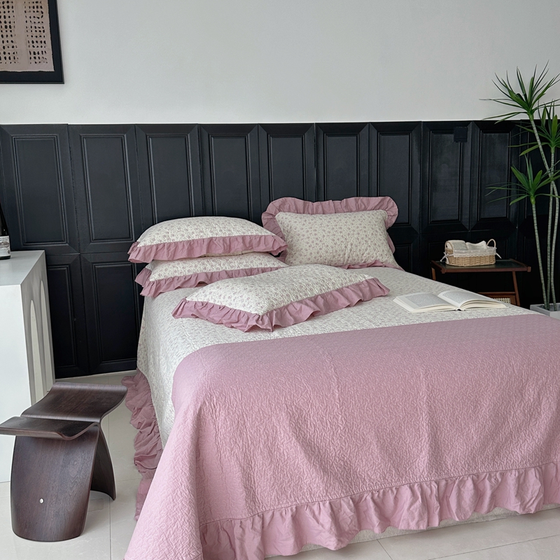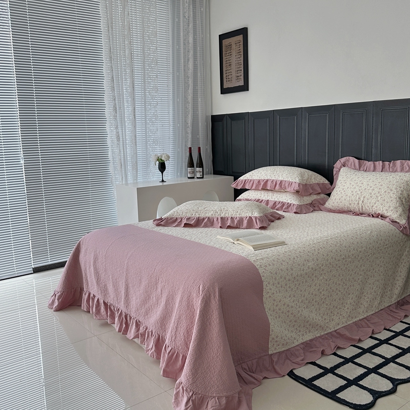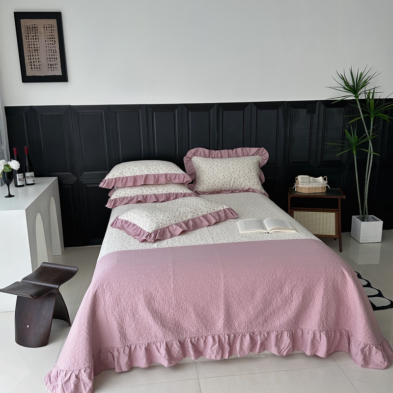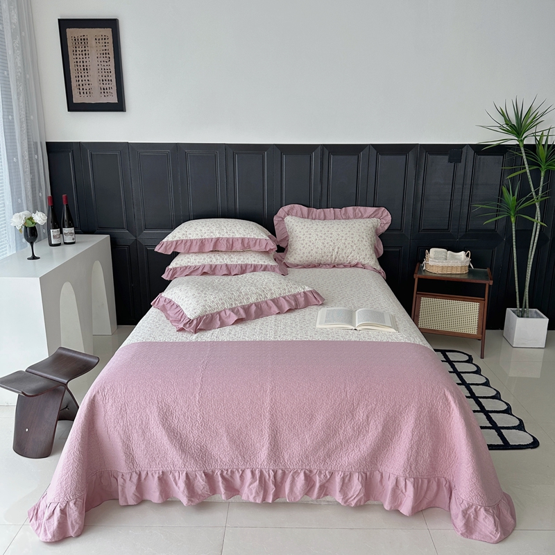 佰织鑫家居 2024新款全棉拼接款棉花砂洗床盖三件套 情书