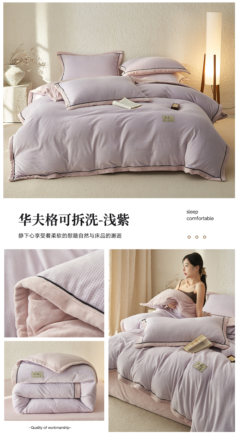 • 91家纺网 家纺一手货源 找家纺 2024新款牛奶绒华夫格可拆洗冬被被子被芯 华夫格可拆洗-浅紫
