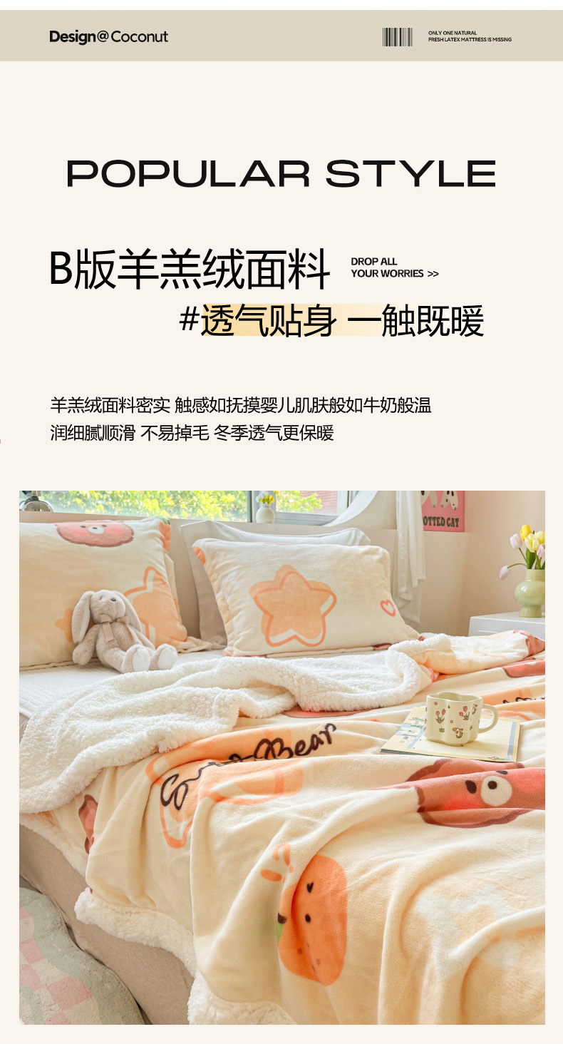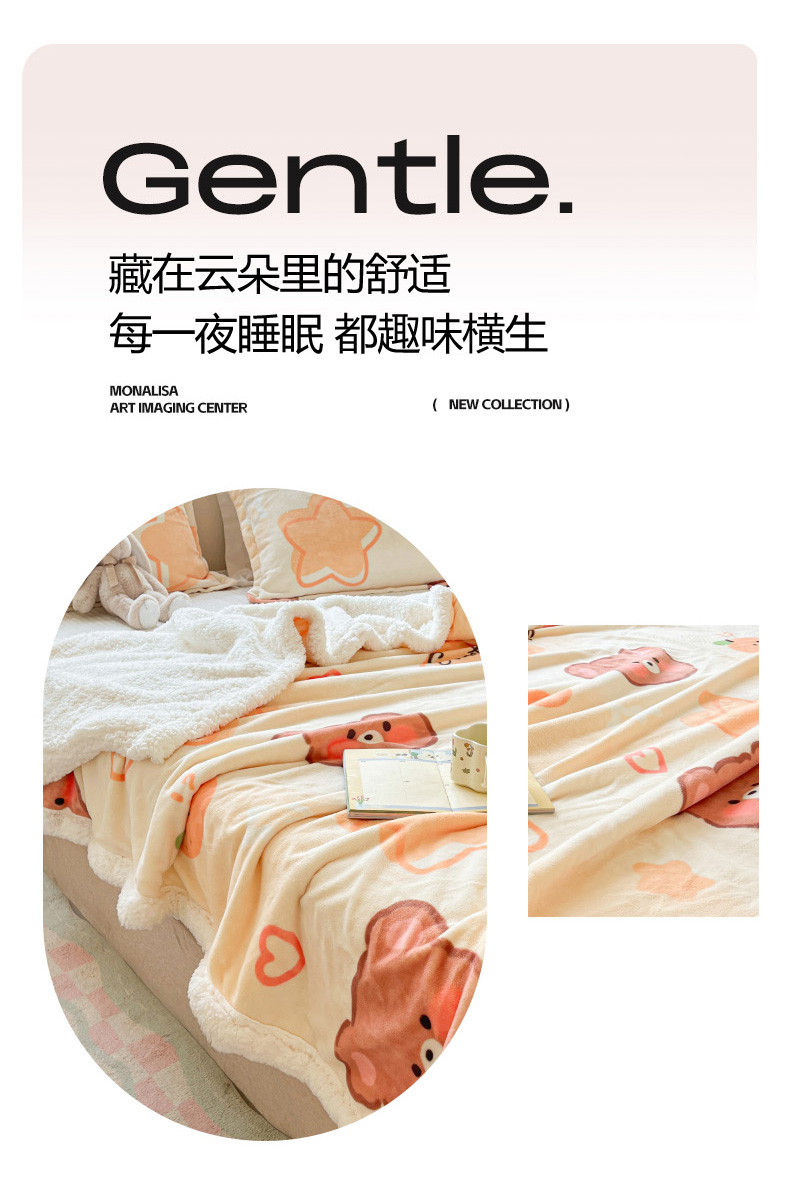 商品名称:沐慕 2024新款AB版牛奶绒拼羊羔绒毛毯毯子 毛毯-星星熊