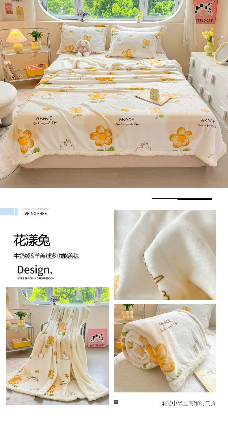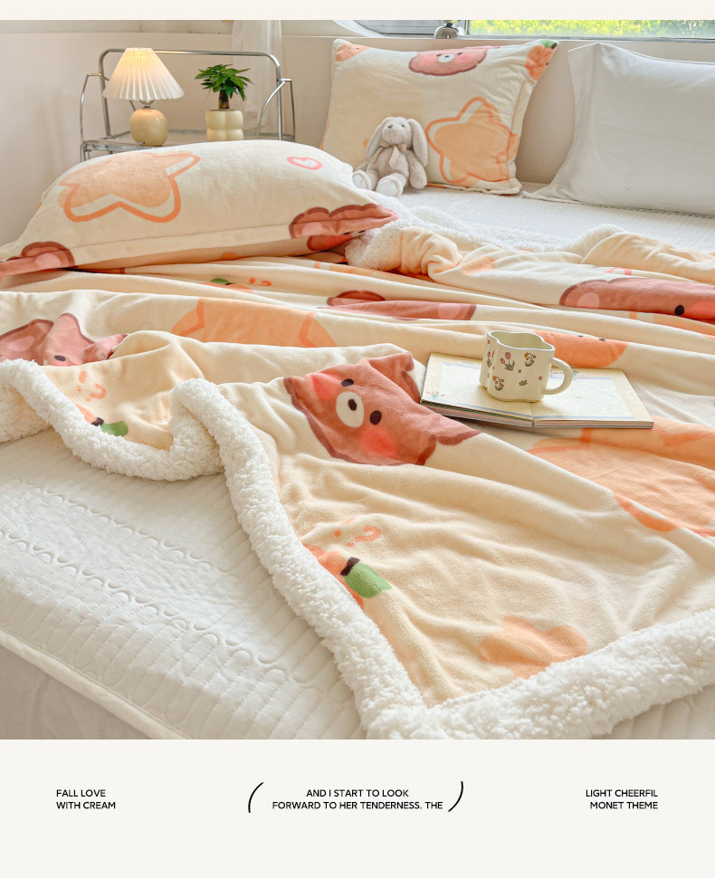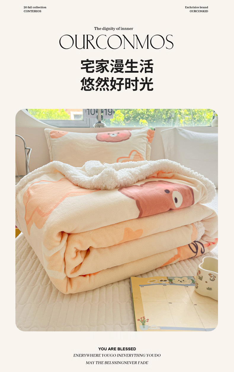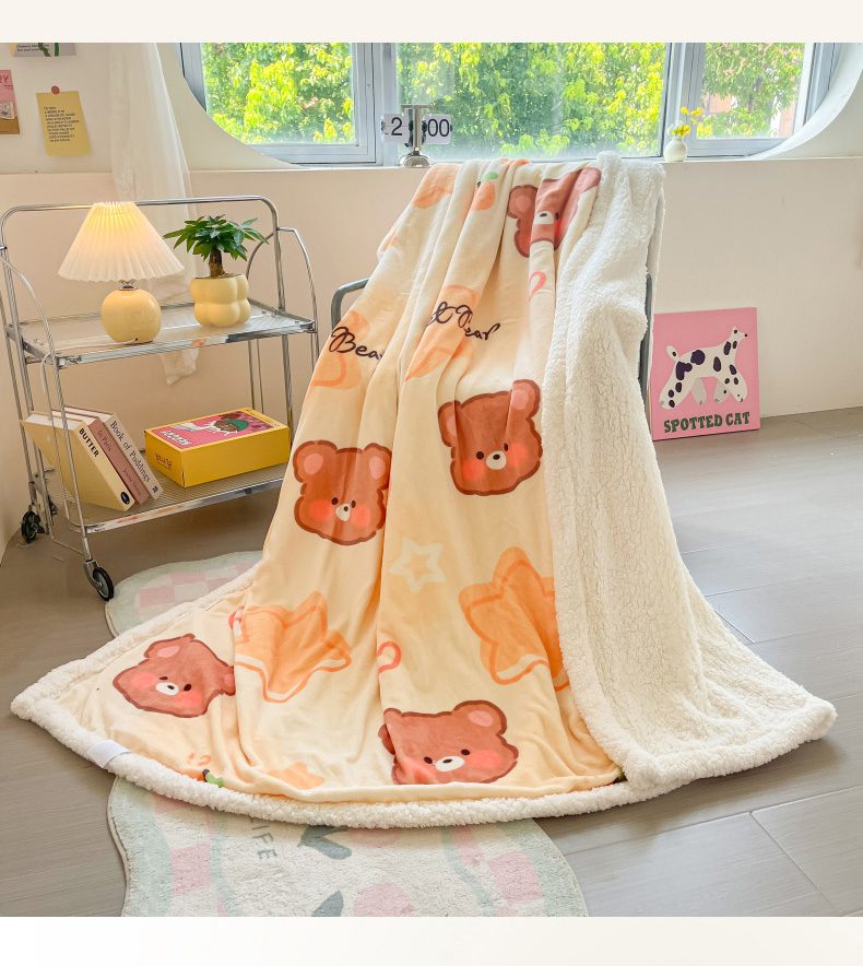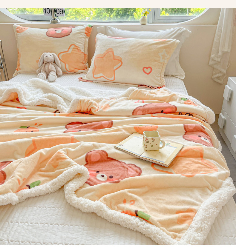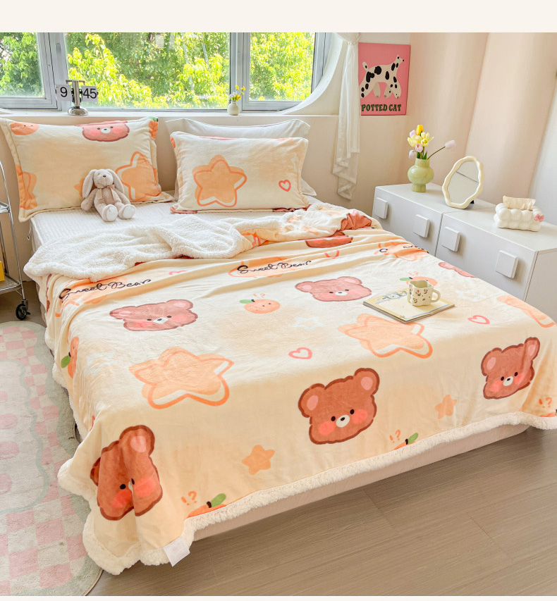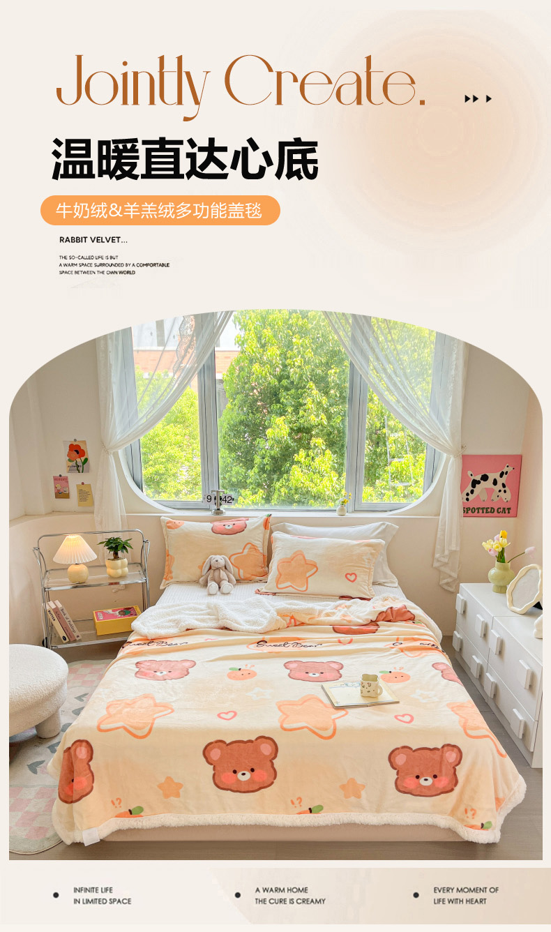 沐慕 2024新款AB版牛奶绒拼羊羔绒毛毯毯子 毛毯-星星熊