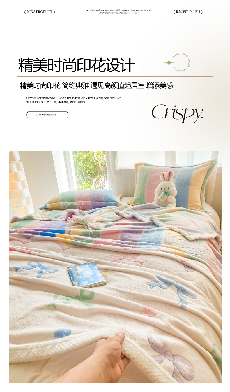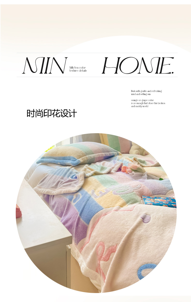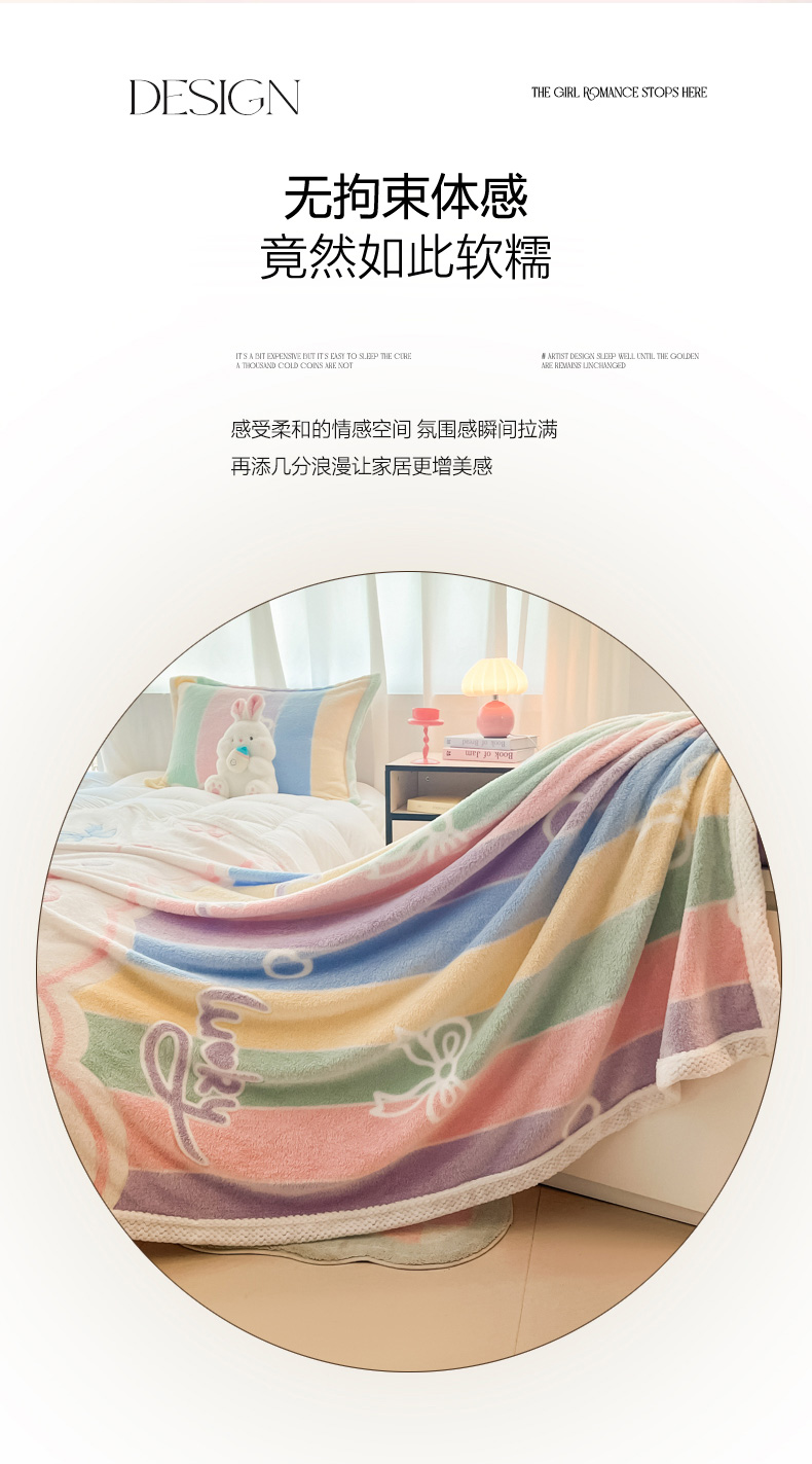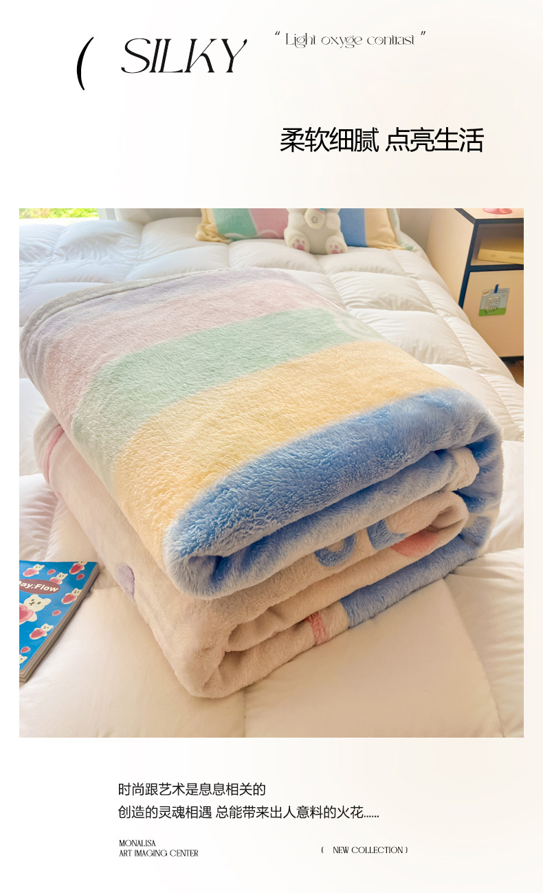 商品名称:沐慕 2024新款加厚雪花绒菠萝格宽幅包边毛毯 毛毯-彩虹