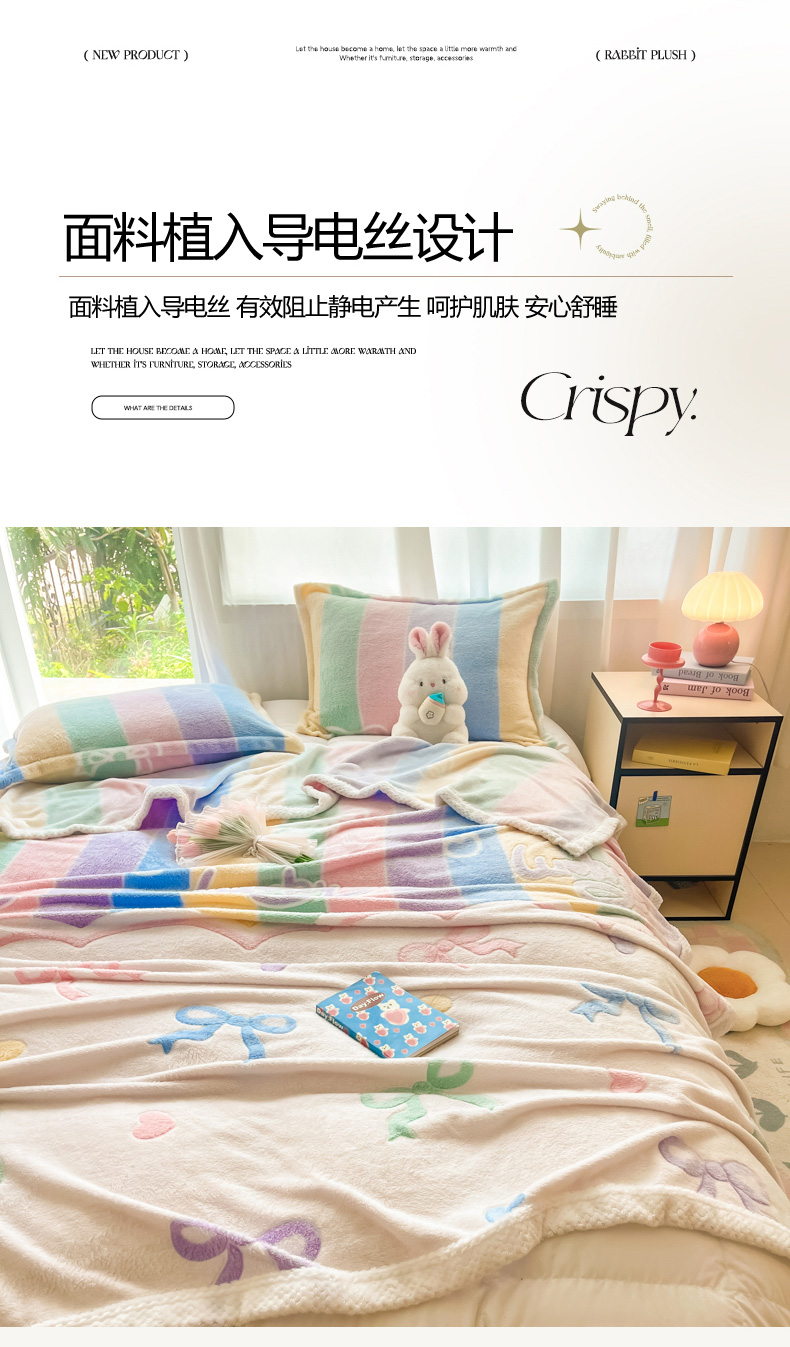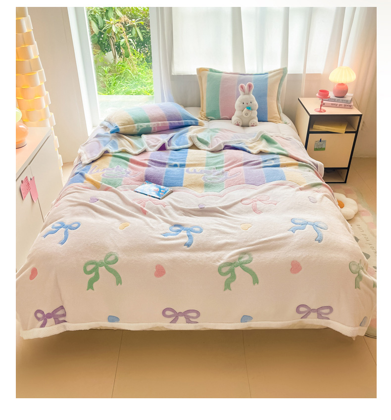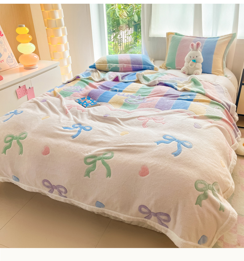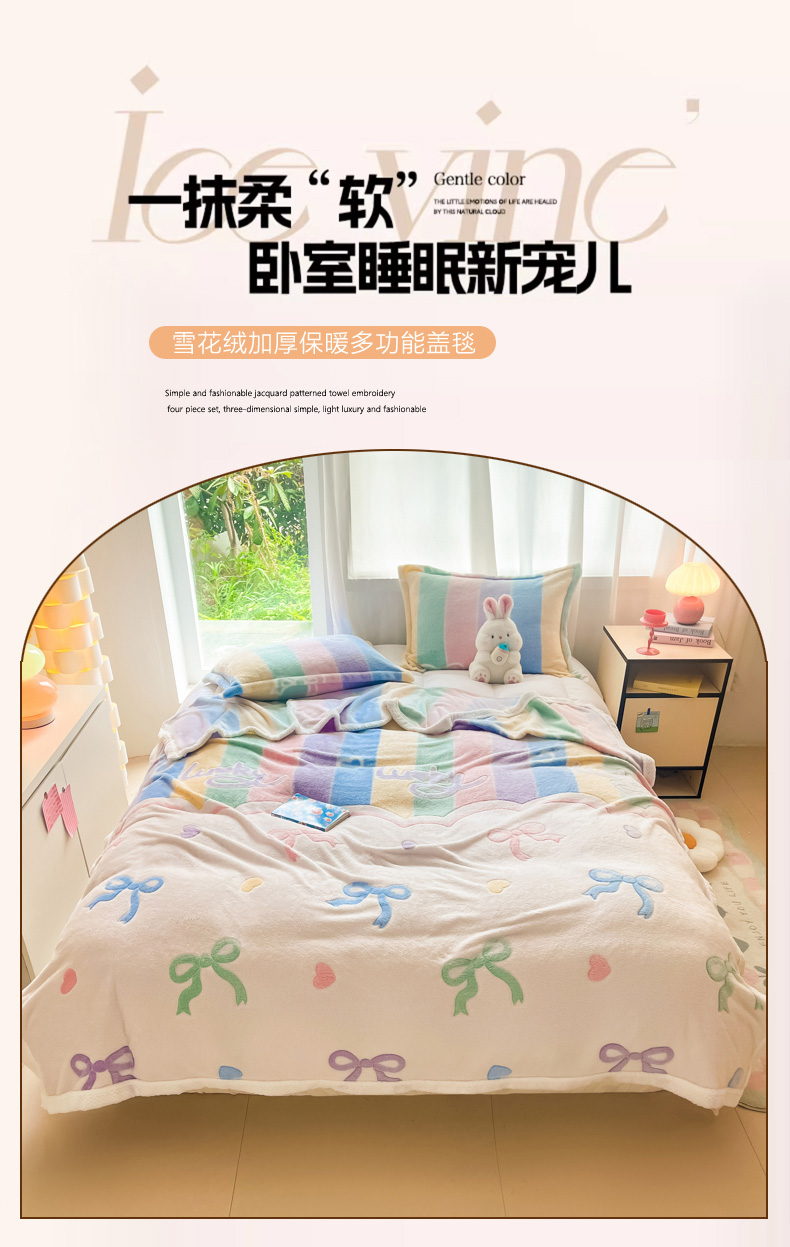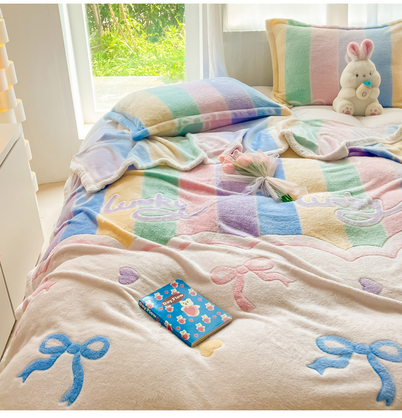 商品名称:沐慕 2024新款加厚雪花绒菠萝格宽幅包边毛毯 毛毯-彩虹