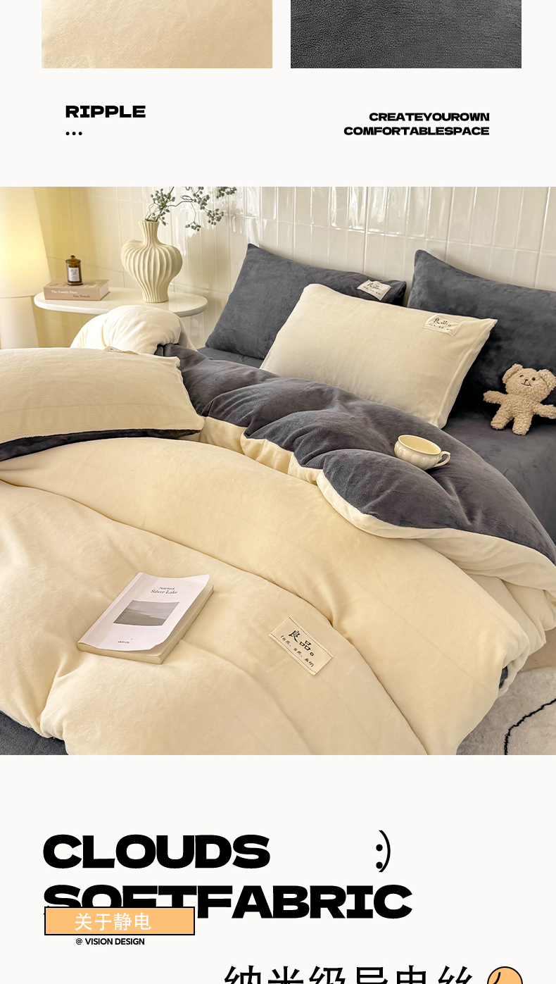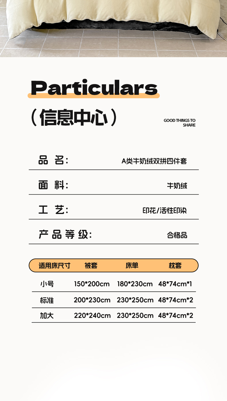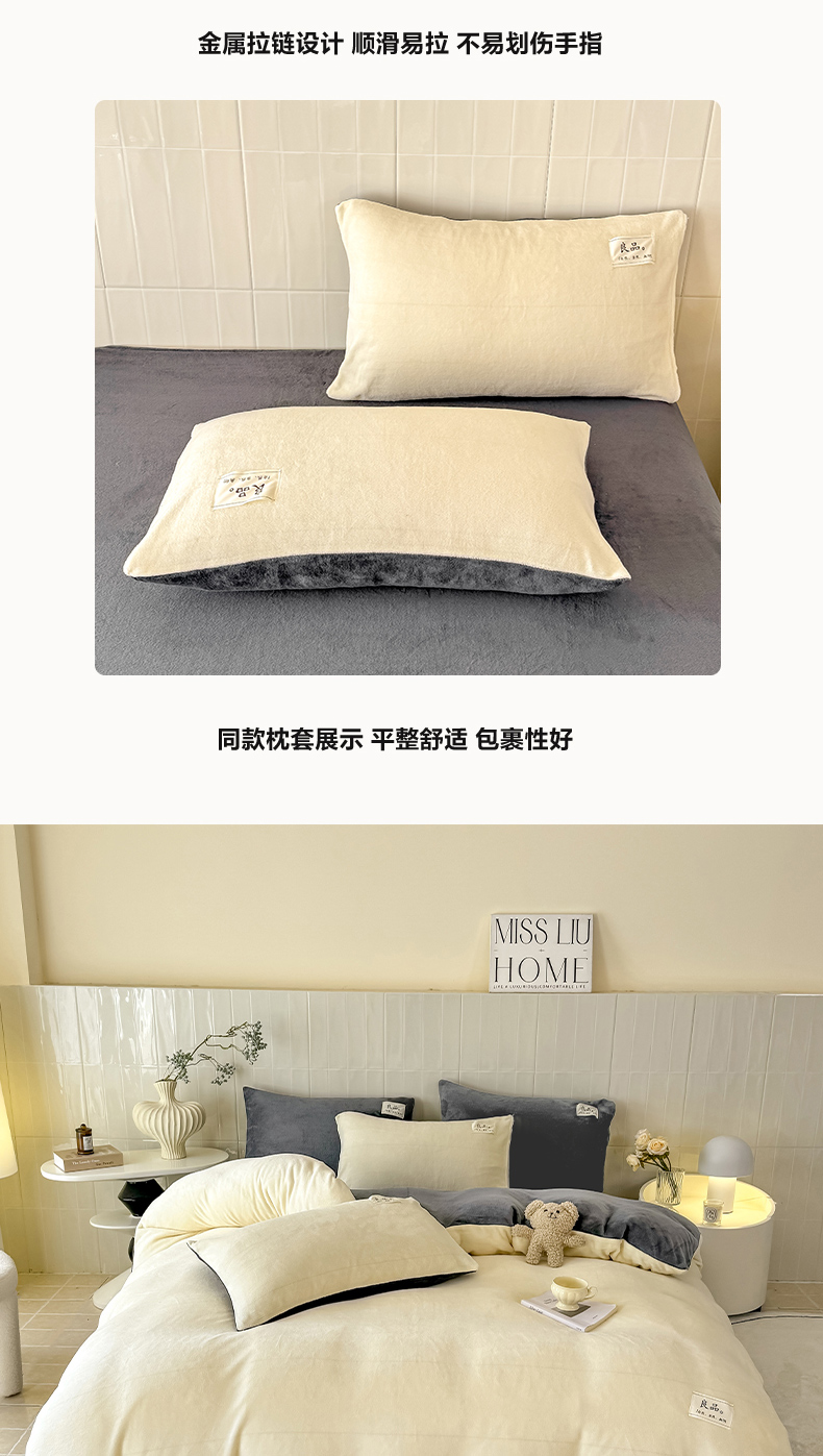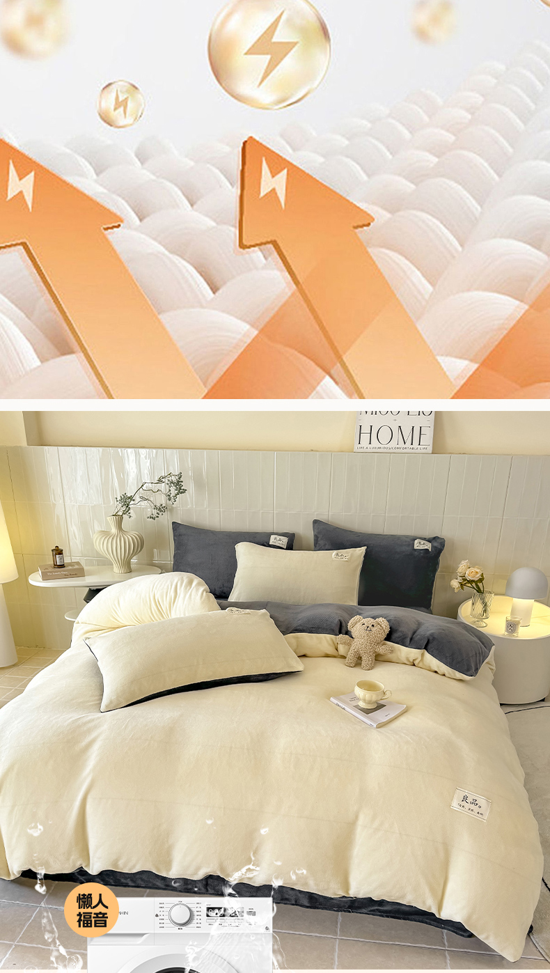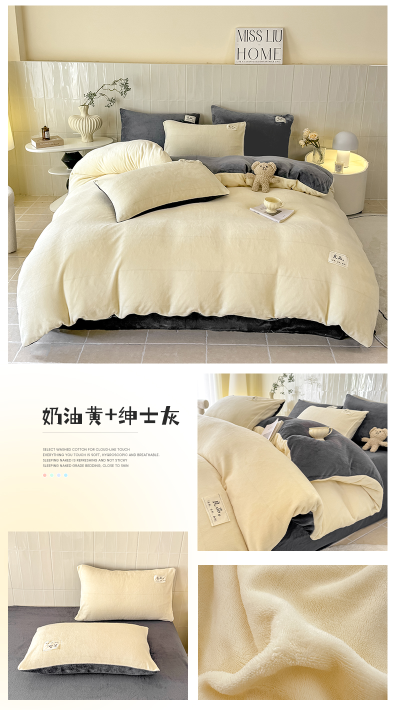 商品名称:牛牛家纺 2025新款A类牛奶绒双拼四件套 奶油黄+绅士灰