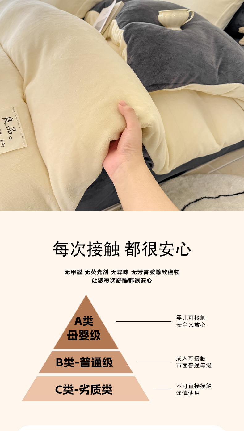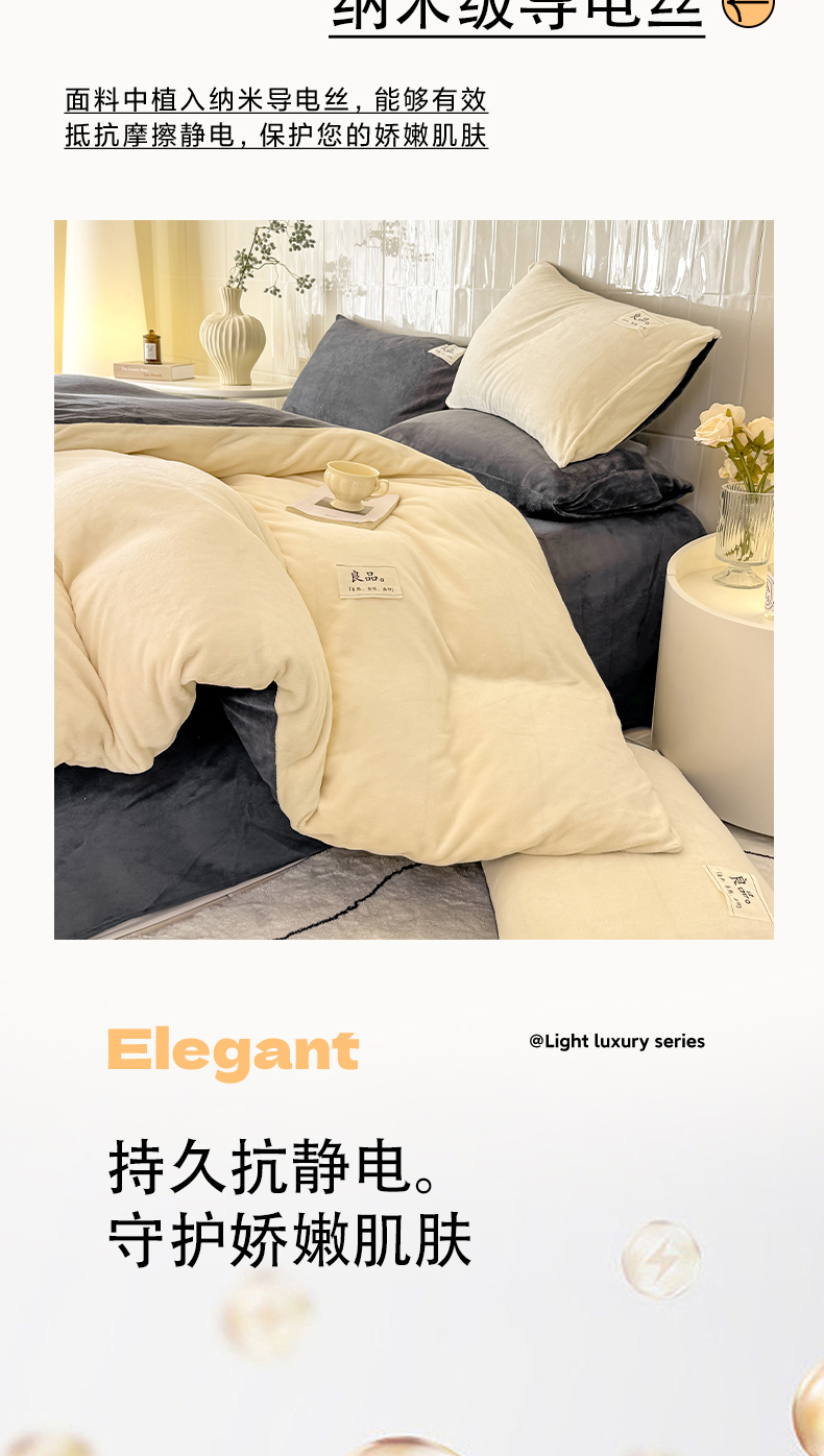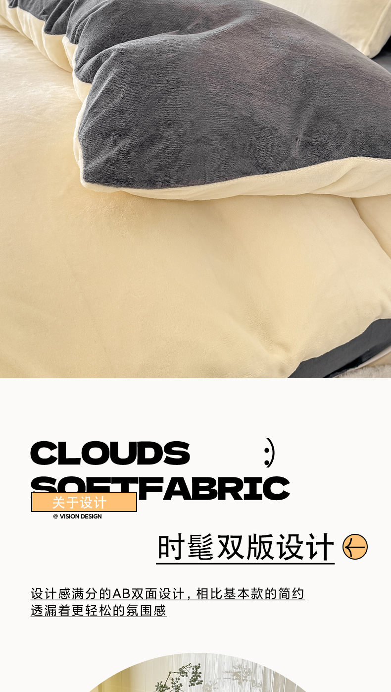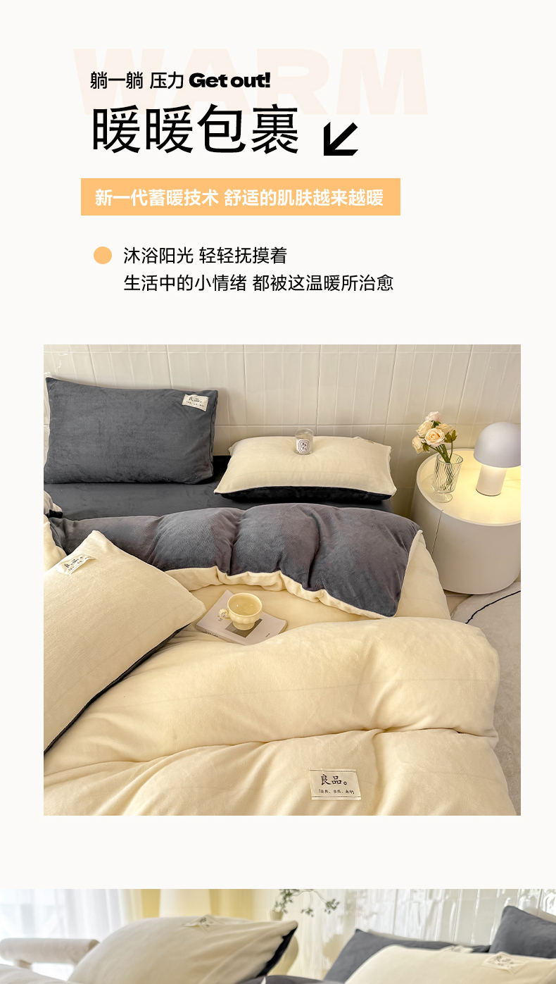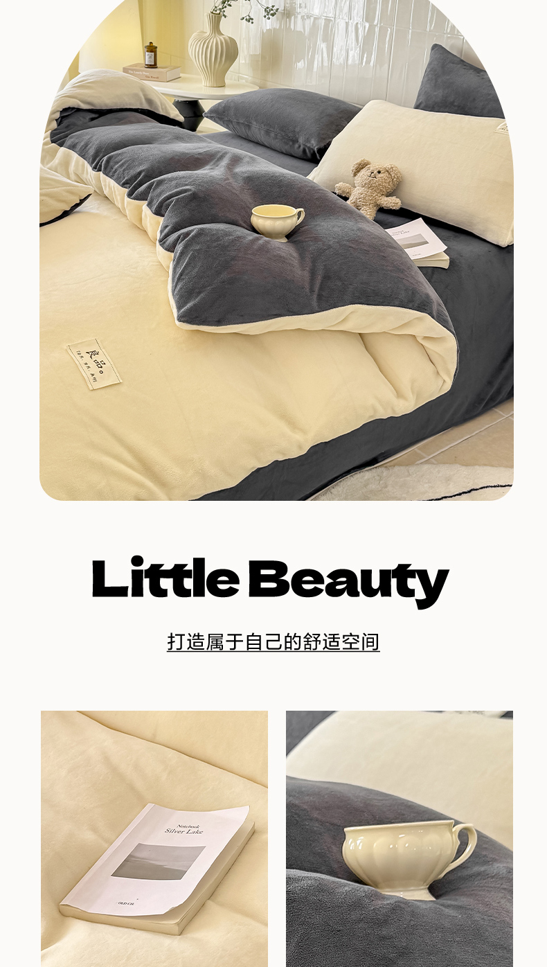 商品名称:牛牛家纺 2025新款A类牛奶绒双拼四件套 奶油黄+绅士灰