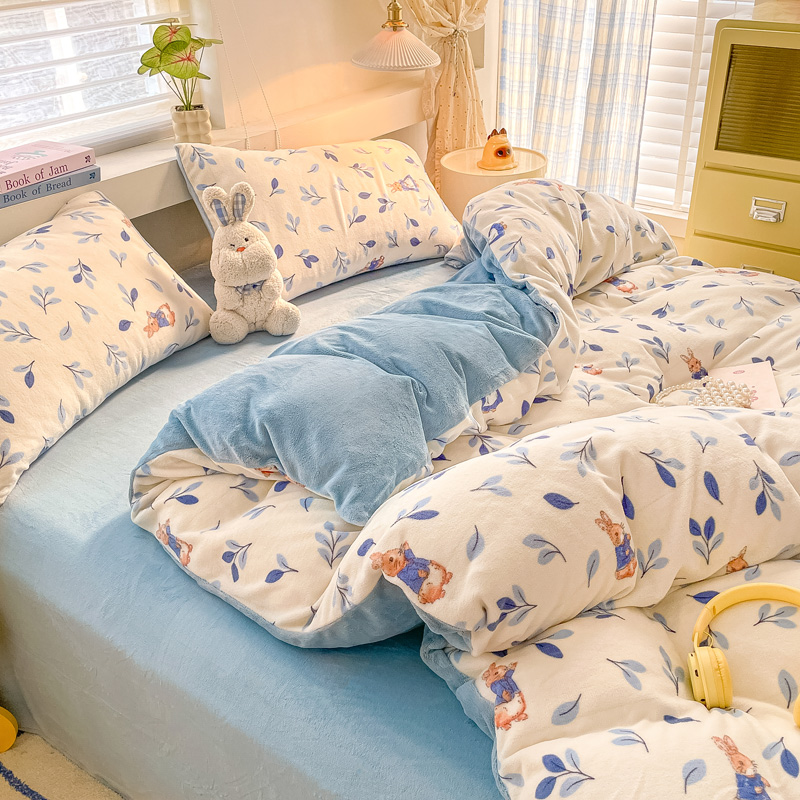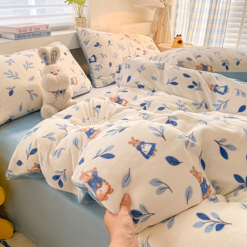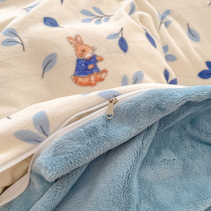 雅居纺家纺 2024新款高克重印花牛奶绒单枕套 树叶小兔子