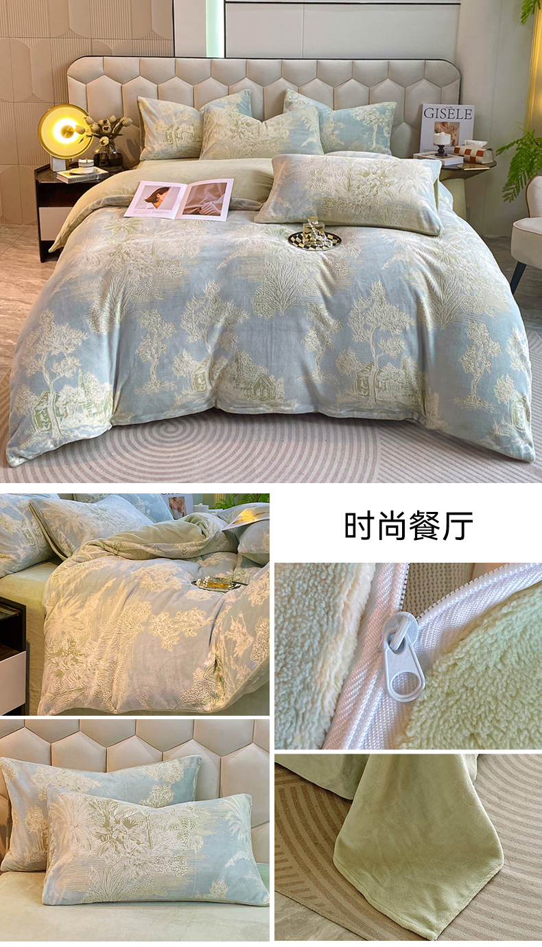佰亿莱 2024新款雕花牛奶绒四件套 时尚餐厅