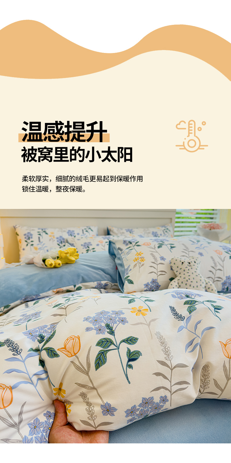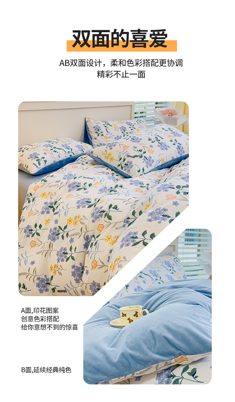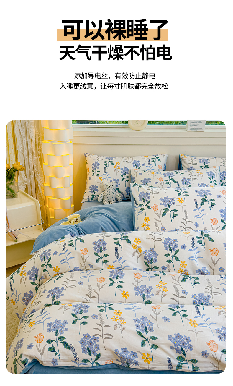 商品名称:(总)清雅福 2024新款小清新ins棉加绒印花四件套系列-棉绒风格一