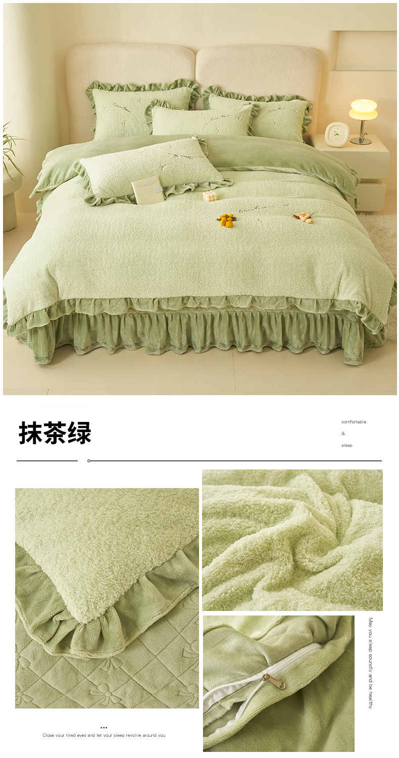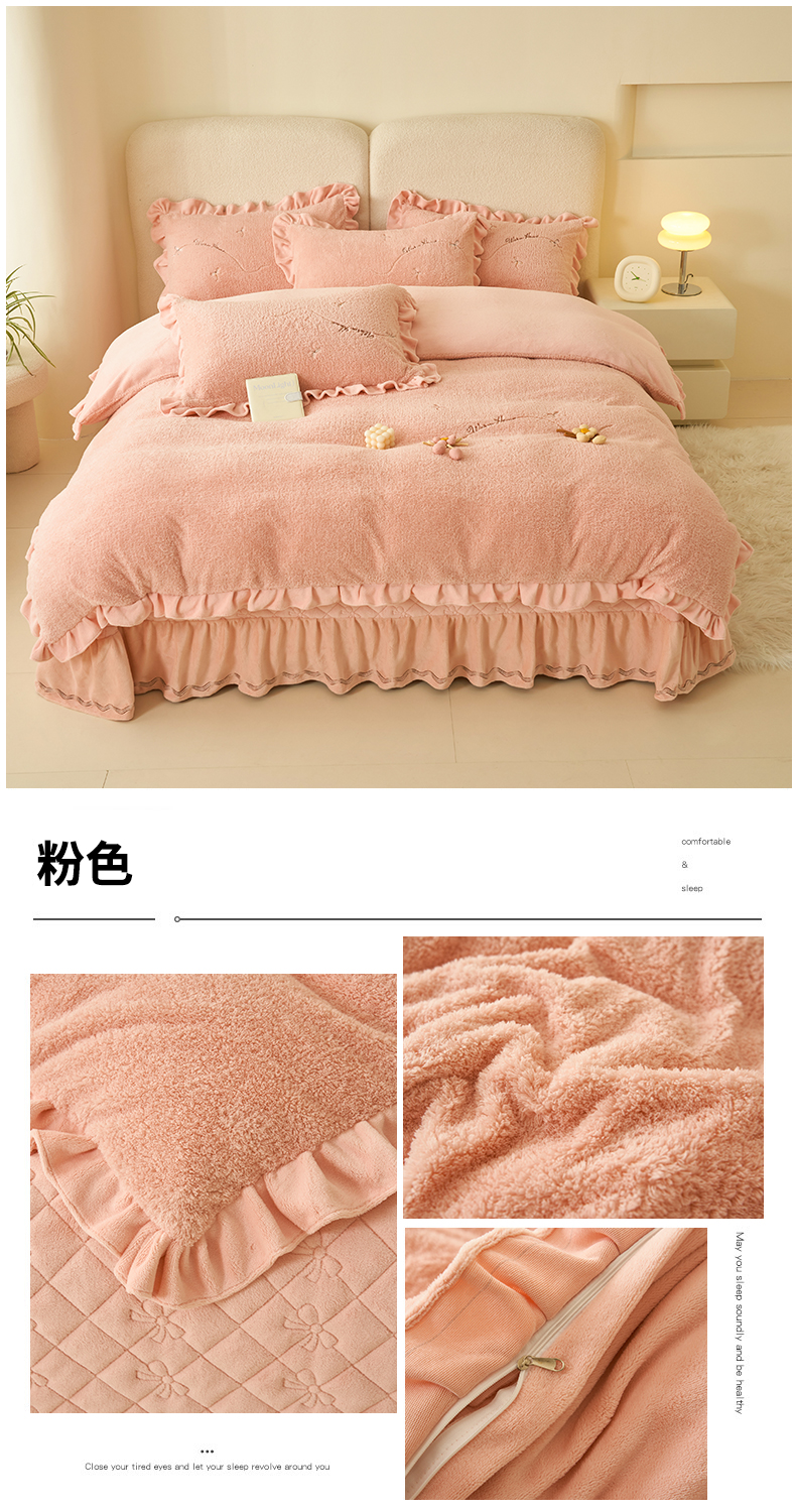 (总)恒爱 2022秋冬水晶绒翩翩花舞夹棉床裙四件套,大红色,豆沙红,橄榄绿,公主粉,桔色,咖啡色,孔雀绿,拉菲红,罗兰紫,玫红色,美人玉,米白色,米驼色,抹茶绿,浅灰色,紫色