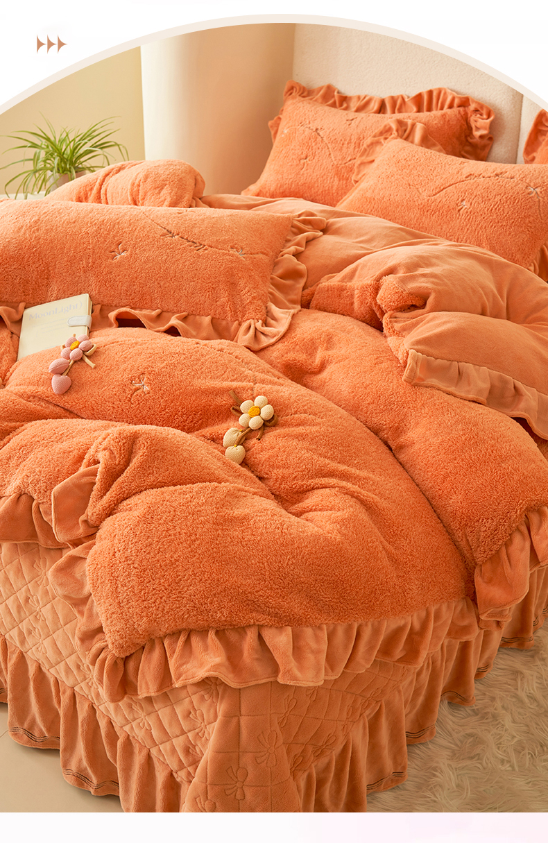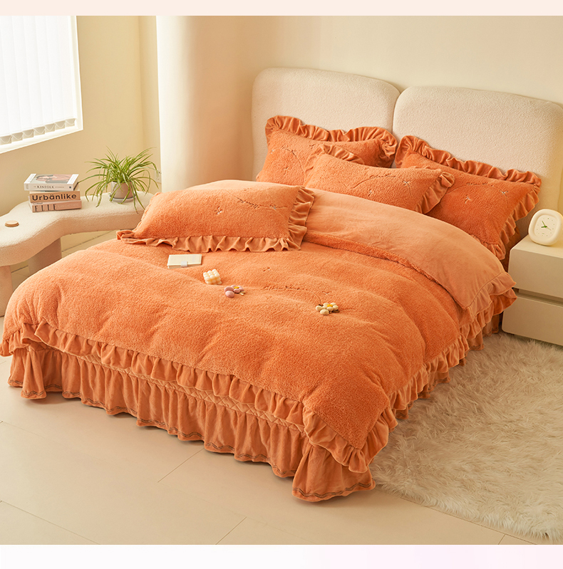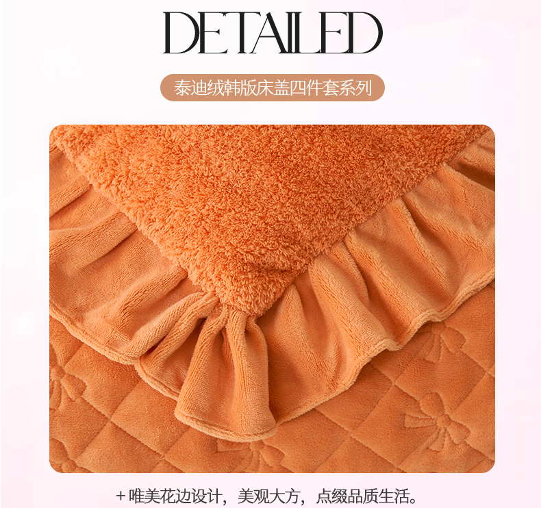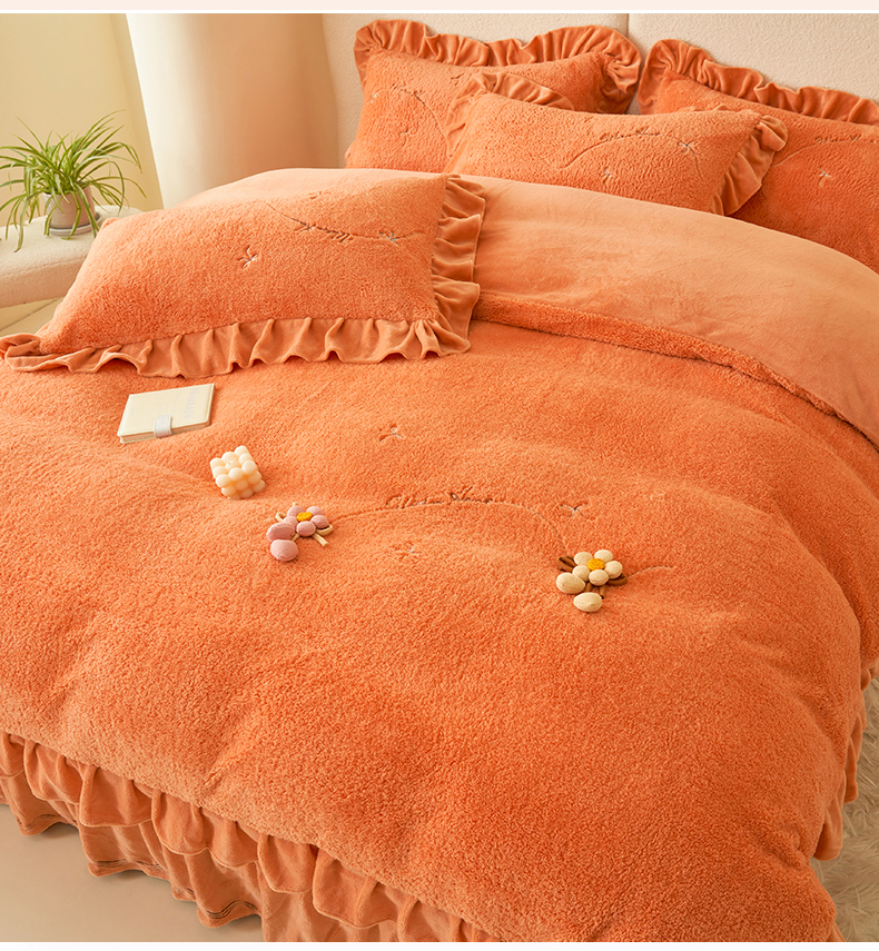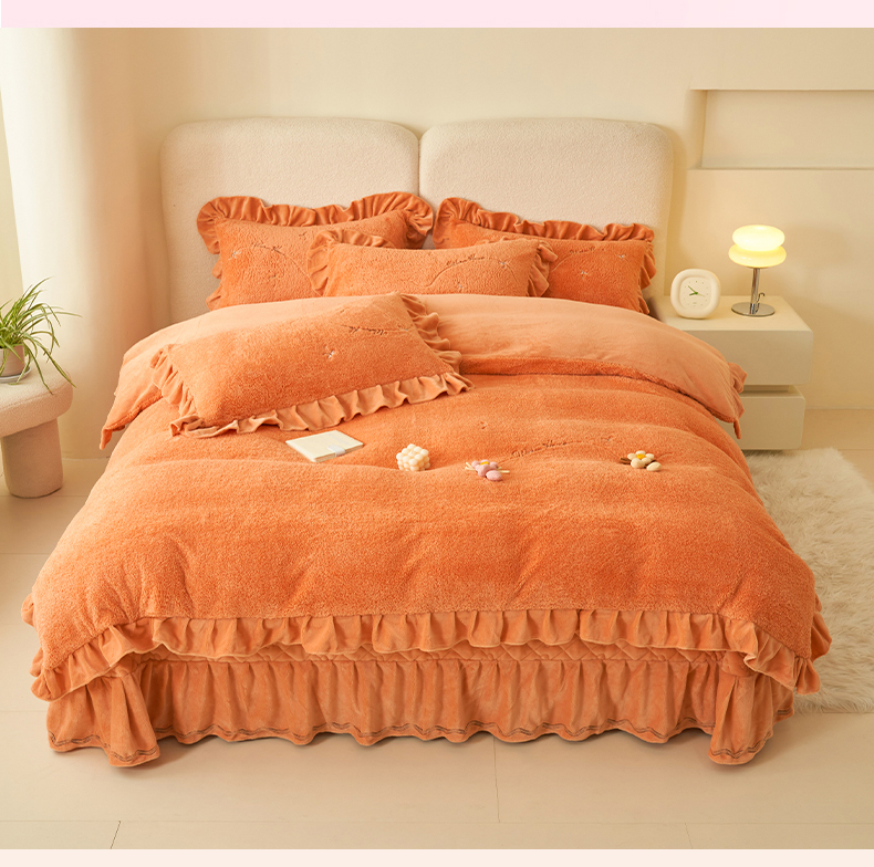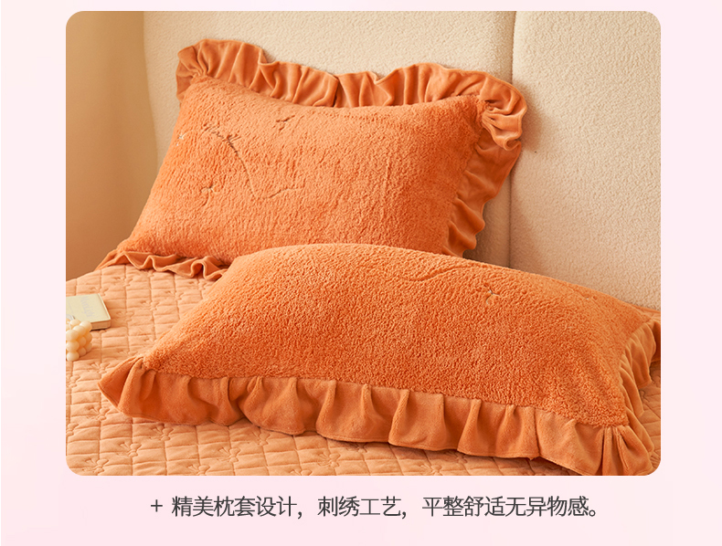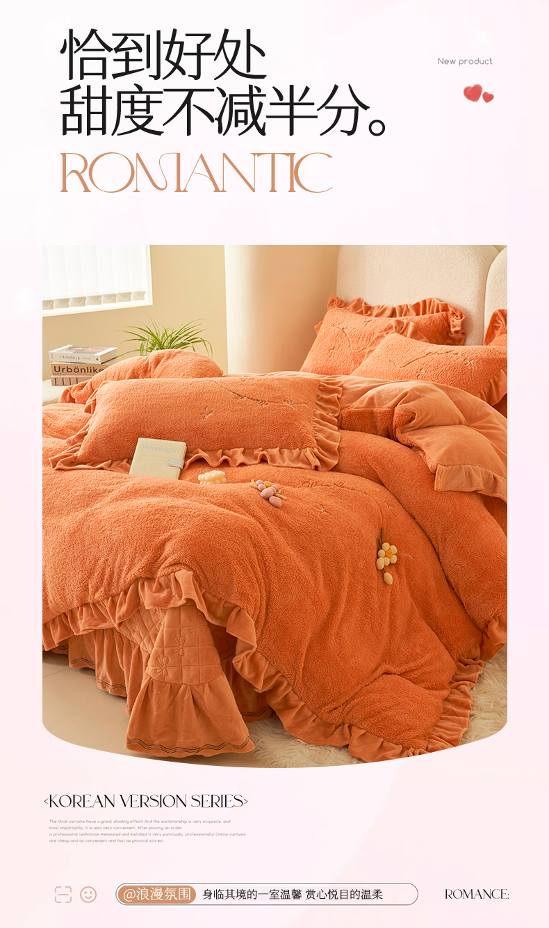 商品名称:恒爱家纺 2024新款泰迪绒韩版床单床盖四件套 桔色