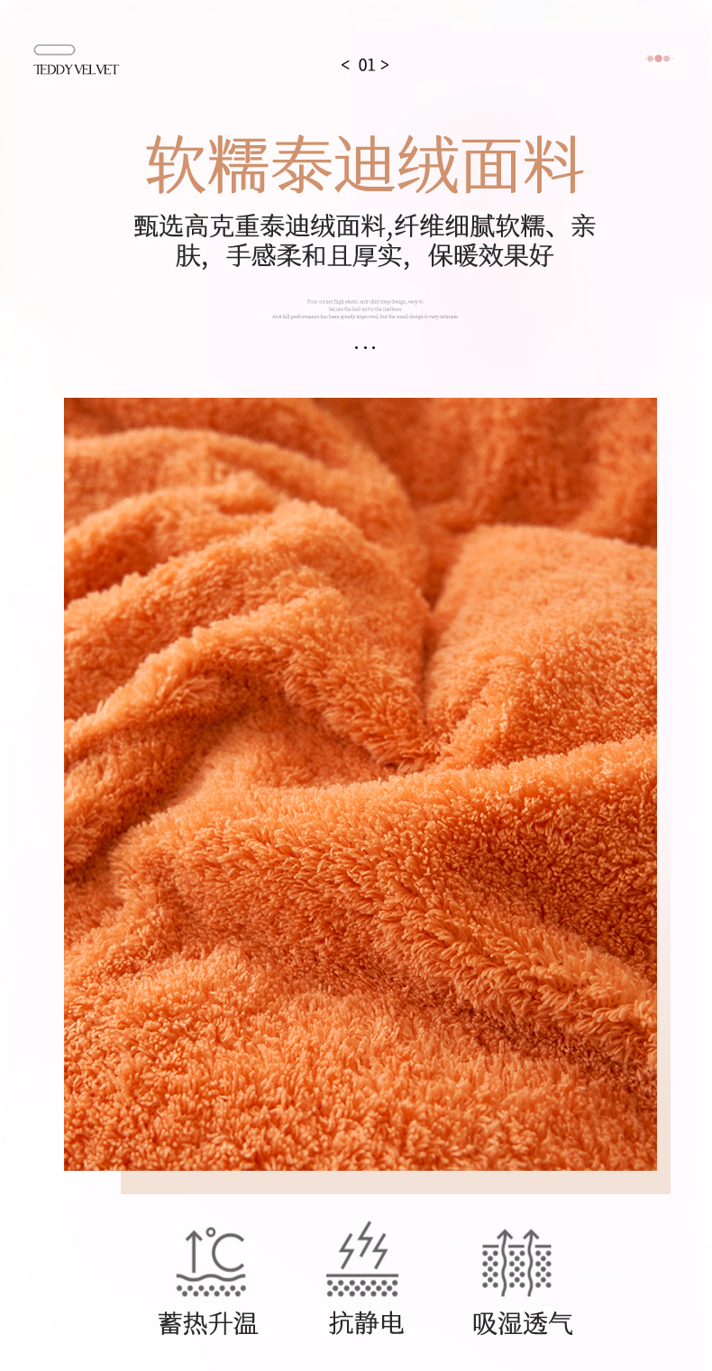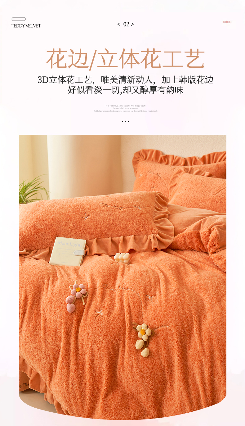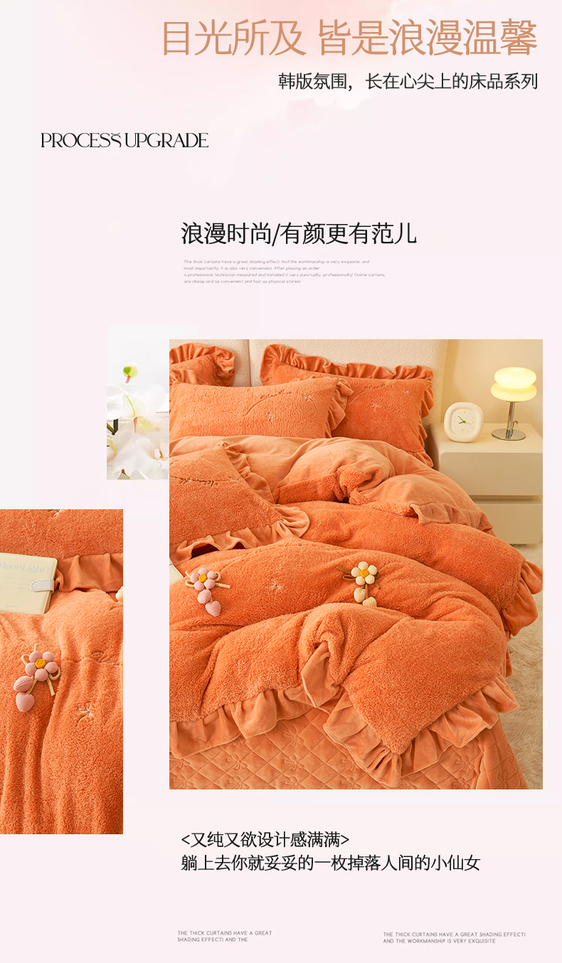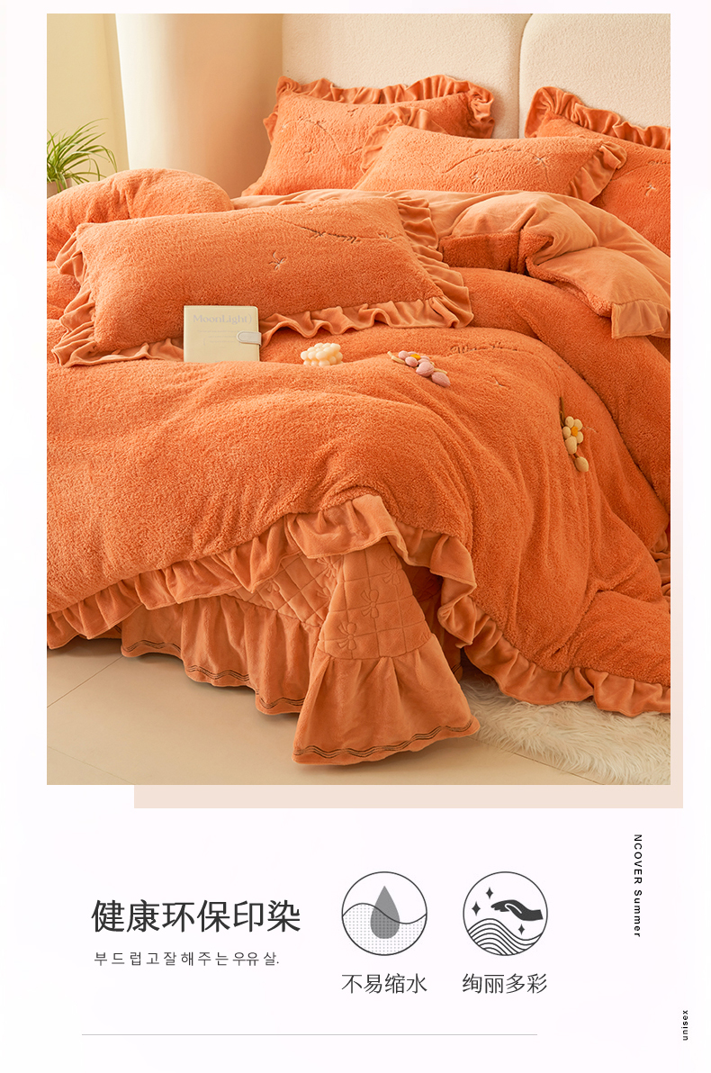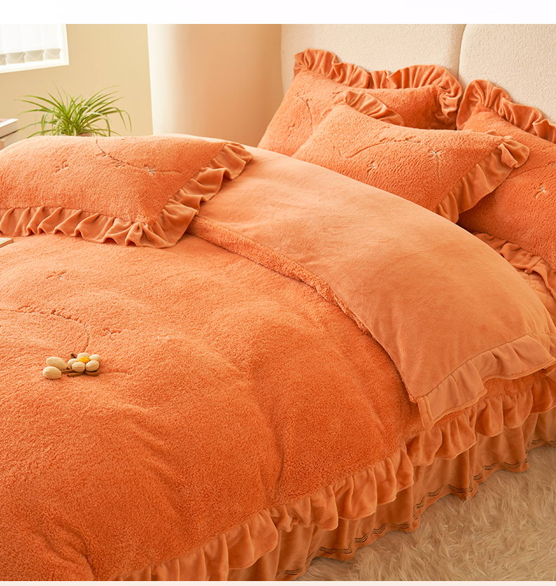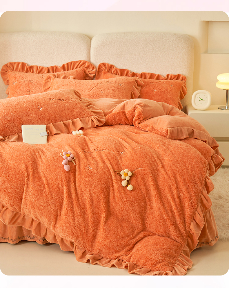 商品名称:恒爱家纺 2024新款泰迪绒韩版床单床盖四件套 桔色