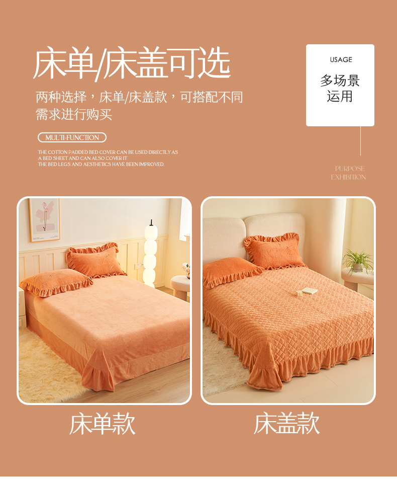 (总)恒爱 2022秋冬水晶绒翩翩花舞夹棉单床裙,大红色,豆沙红,橄榄绿,公主粉,桔色,咖啡色,孔雀绿,拉菲红,罗兰紫,玫红色,美人玉,米白色,米驼色,抹茶绿,浅灰色,紫色