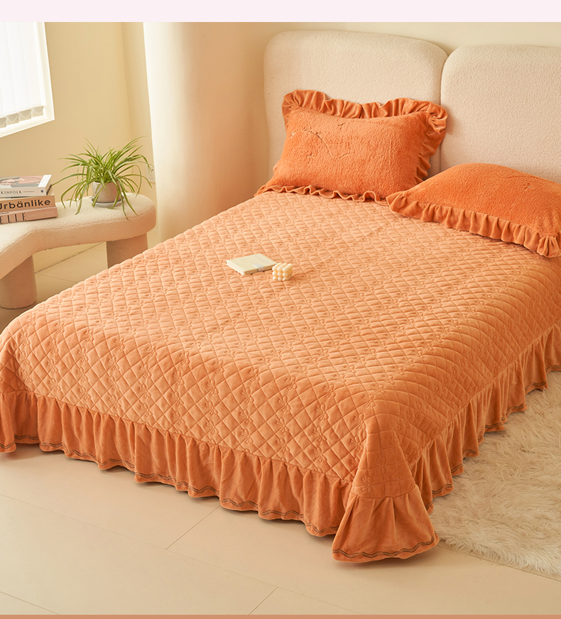 恒爱家纺 2024新款泰迪绒韩版床单床盖四件套 桔色
