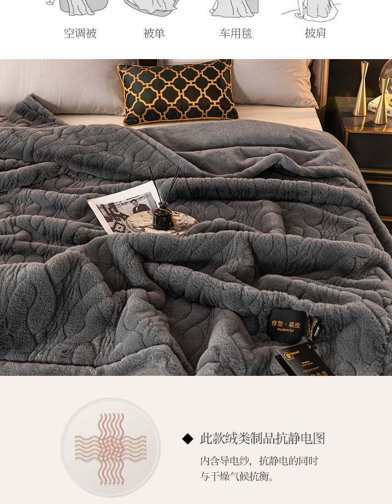 商品名称:凯轩毛毛毯毯子网销专供 2024新款精品仿裘皮毛毯毯子 绅士灰