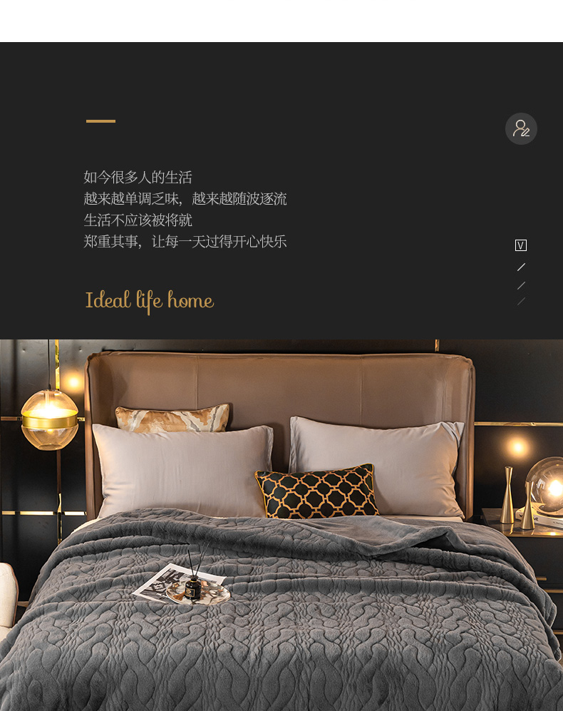 凯轩毛毛毯毯子网销专供 2024新款精品仿裘皮毛毯毯子 绅士灰