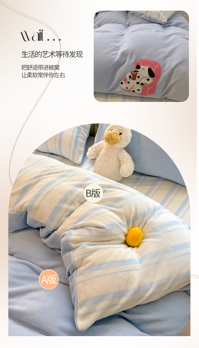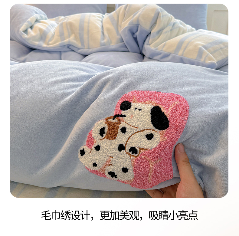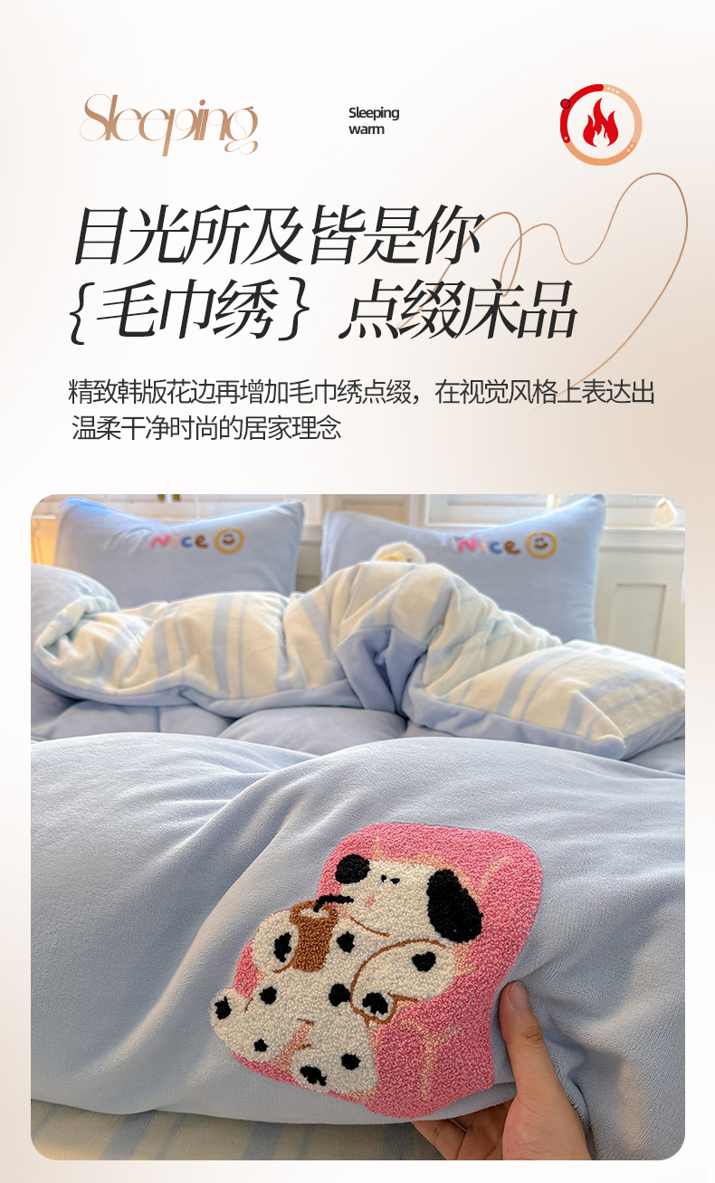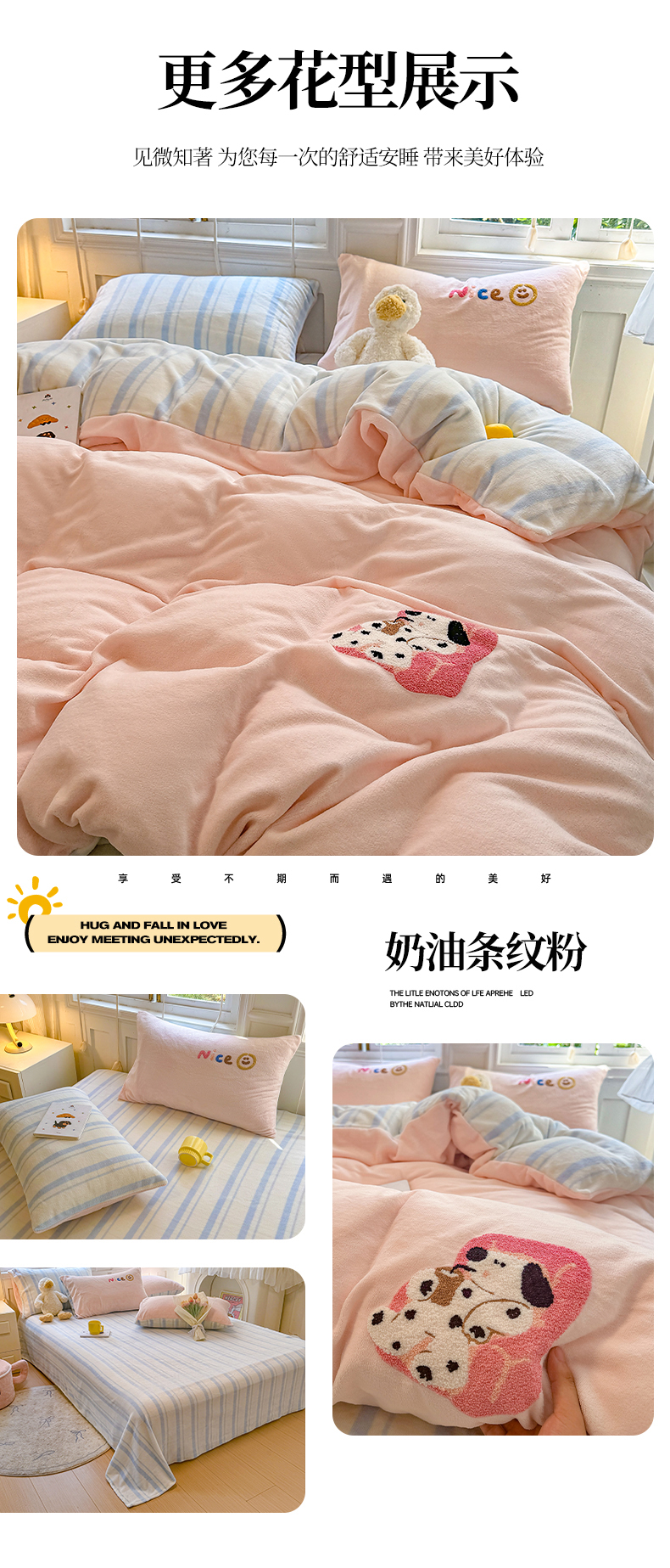 当前位置: 91家纺网 > 商品网购 > 床品套件 > 四件套 > 牛奶绒四件套 > 布柔 2024新款ins风小清新毛巾绣高克重牛奶绒奶油条纹四件套 奶油条纹粉