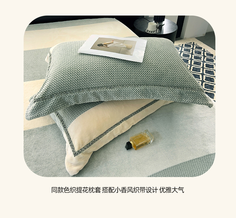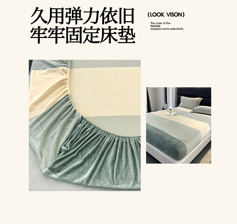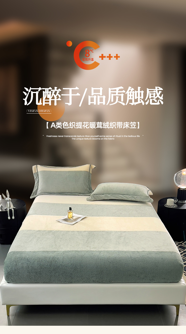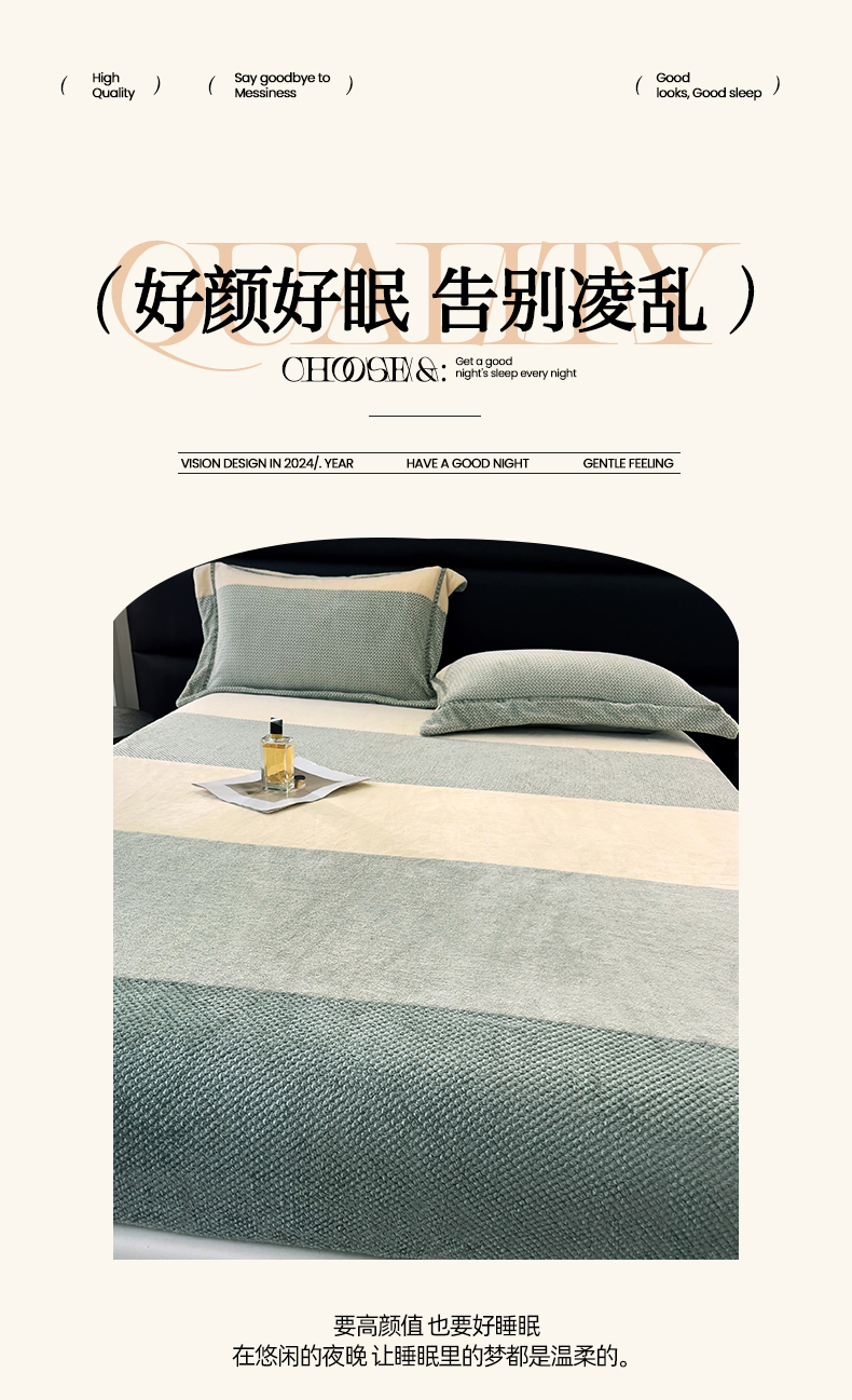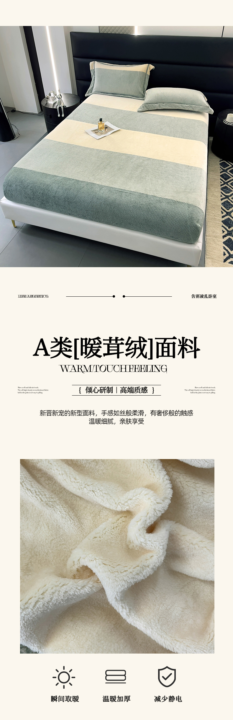 商品名称:网客家纺 2024新款高克重暖茸绒色织提花床笠-泰瑞莎 泰瑞莎床笠-绿