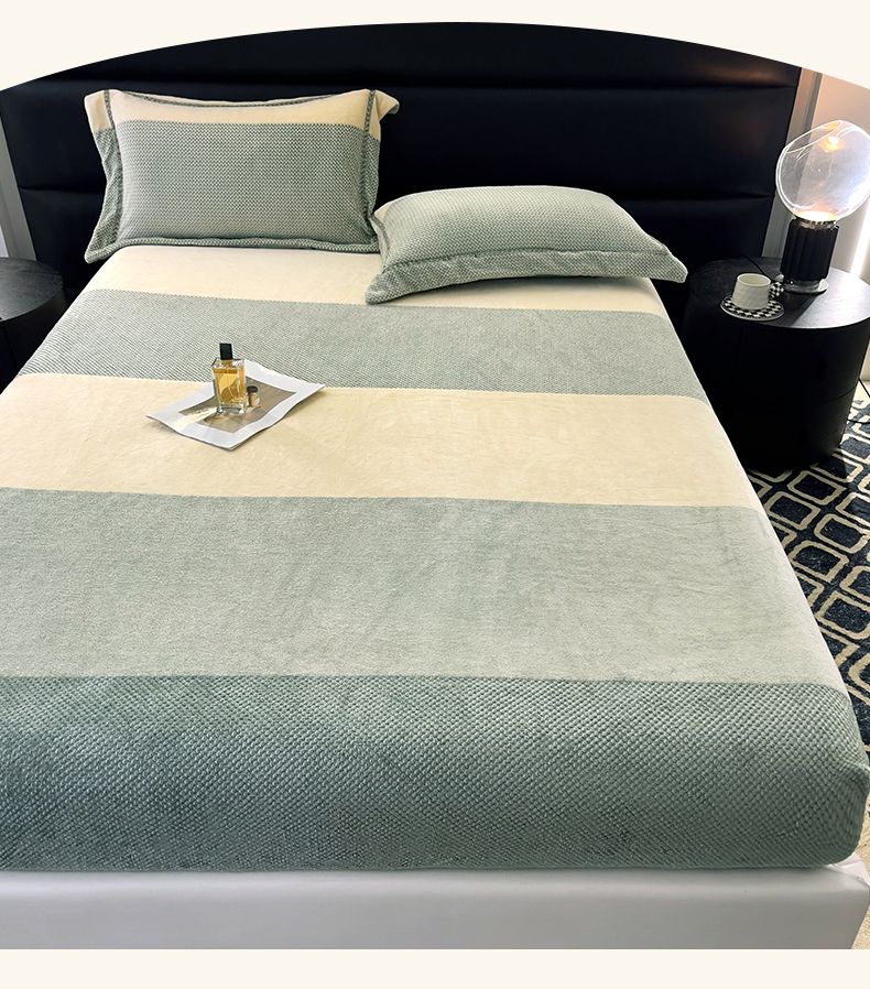 网客家纺 2024新款高克重暖茸绒色织提花床笠-泰瑞莎 泰瑞莎床笠-绿