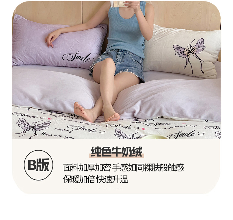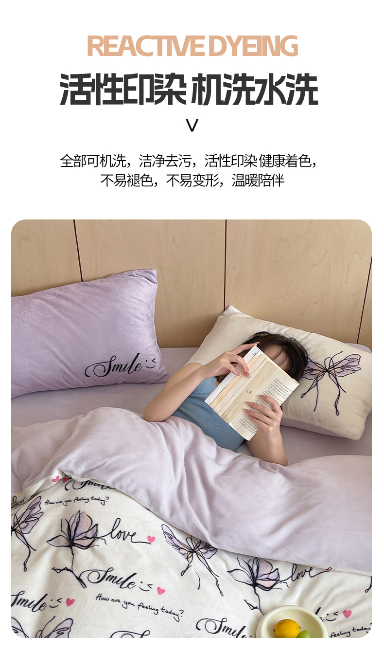 羚羊语家纺 2024新款ins博主风牛奶绒四件套数码印花小红书爆款秋冬加厚宝宝绒婴儿绒法莱绒法兰绒珊瑚绒三件套 花漾蝶语