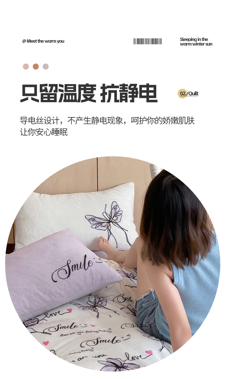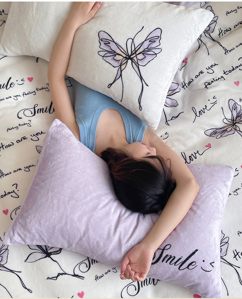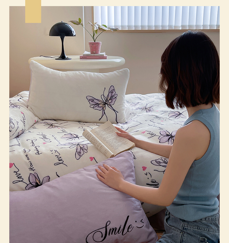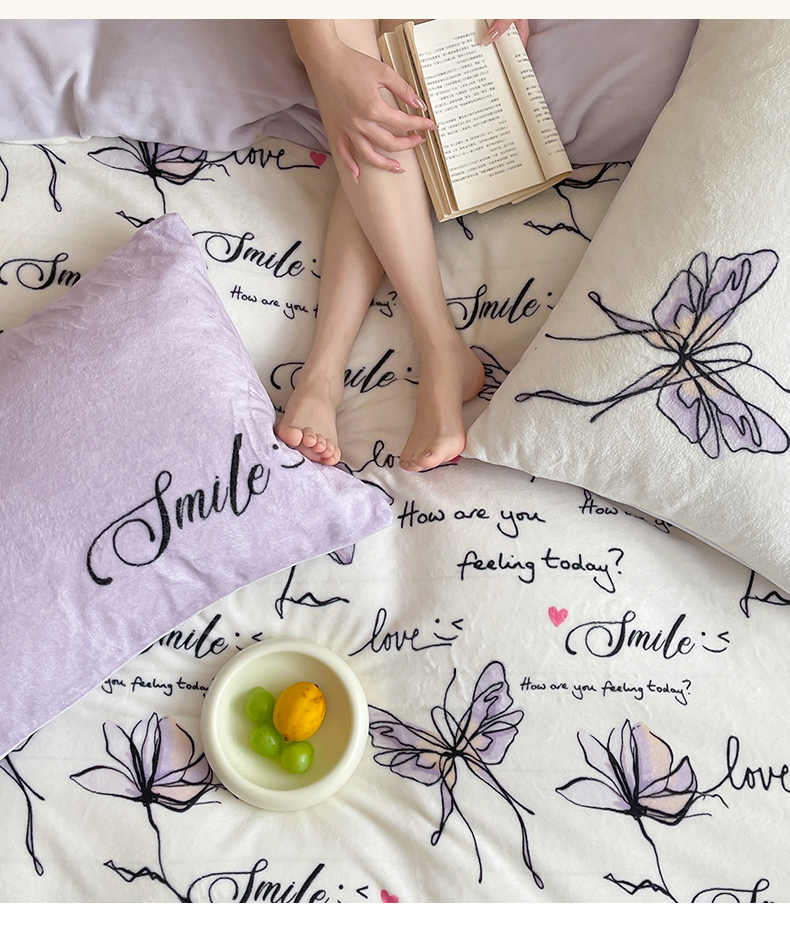 商品名称:羚羊语家纺 2024新款ins博主风牛奶绒四件套数码印花小红书爆款秋冬加厚宝宝绒婴儿绒法莱绒法兰绒珊瑚绒三件套 花漾蝶语