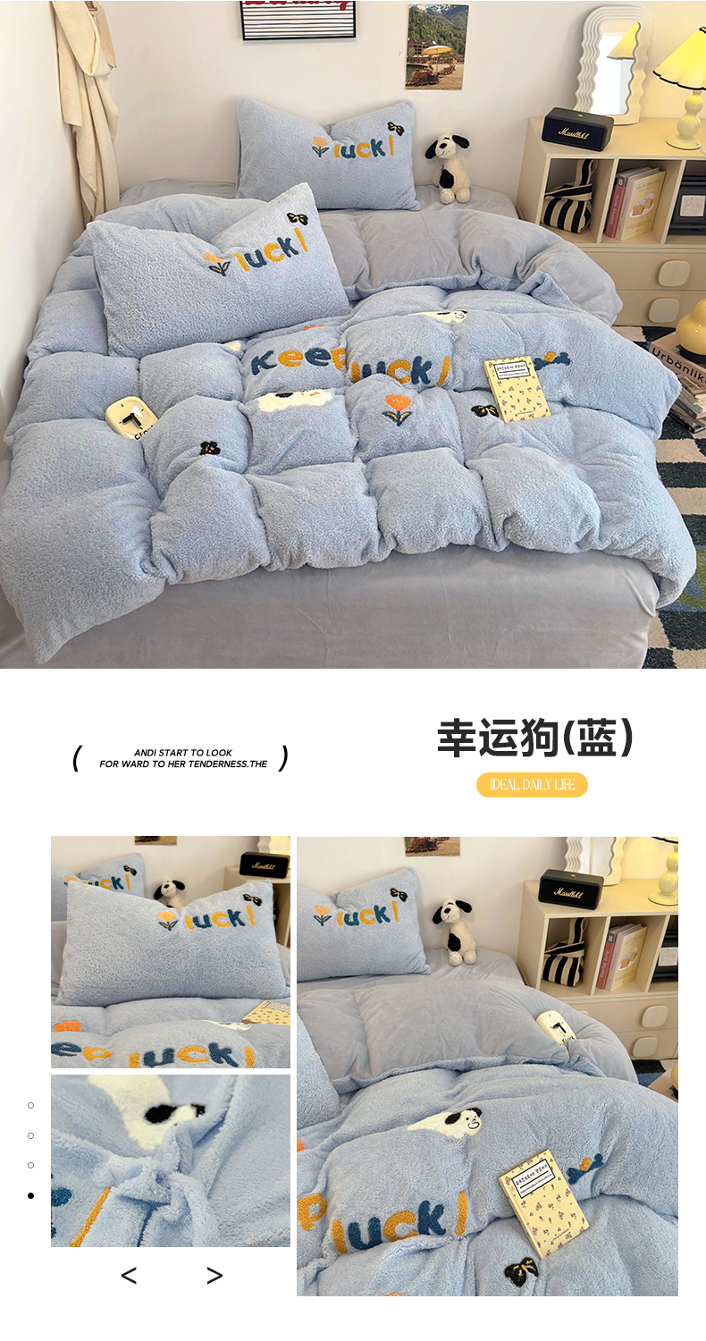 春光里 2024新款泰迪绒230克牛奶绒毛巾绣四件套(提供买家秀) 幸运狗(蓝)