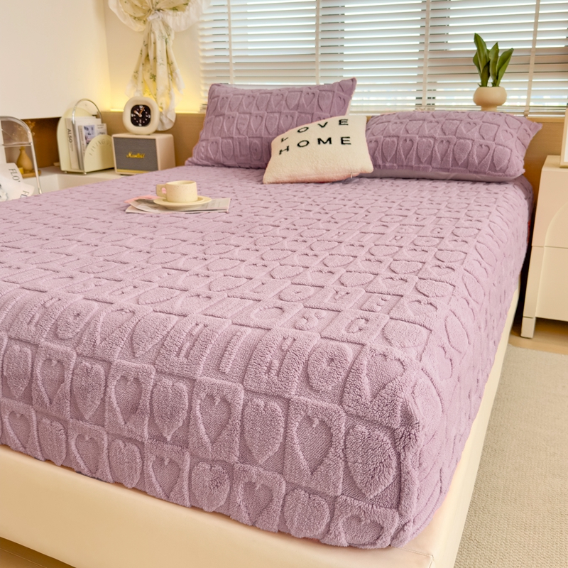 希廷顿 2024新款柔暖立体剪花塔芙绒床笠 爱心-香芋紫