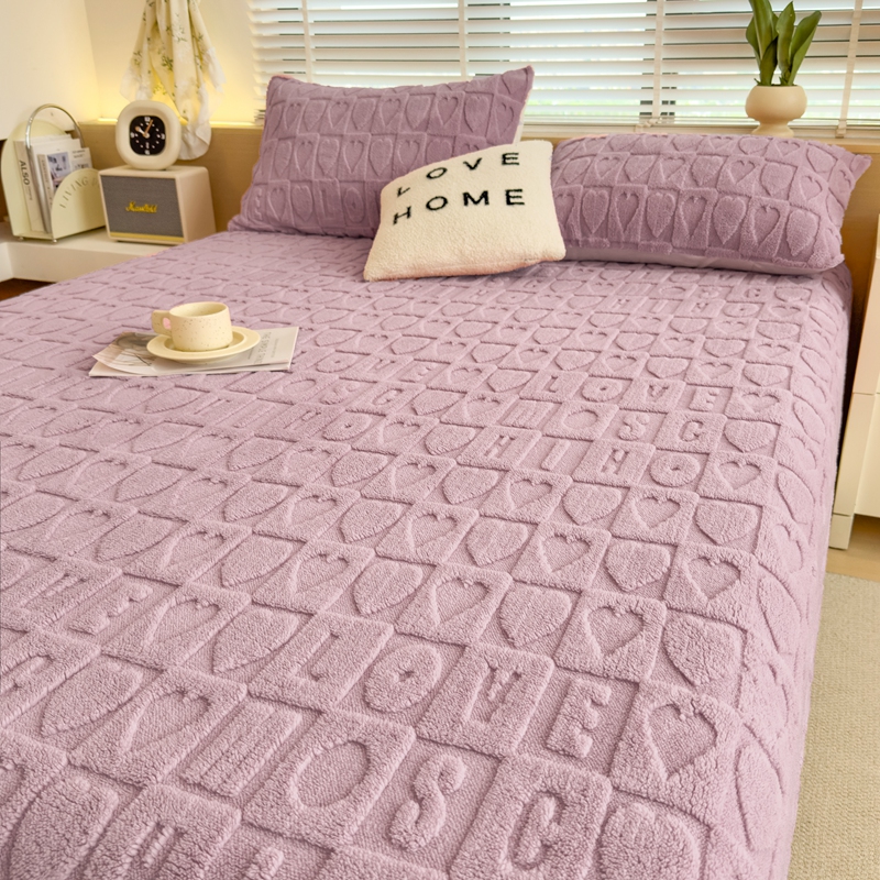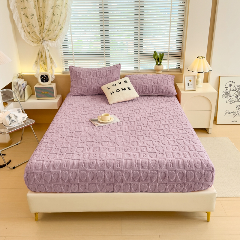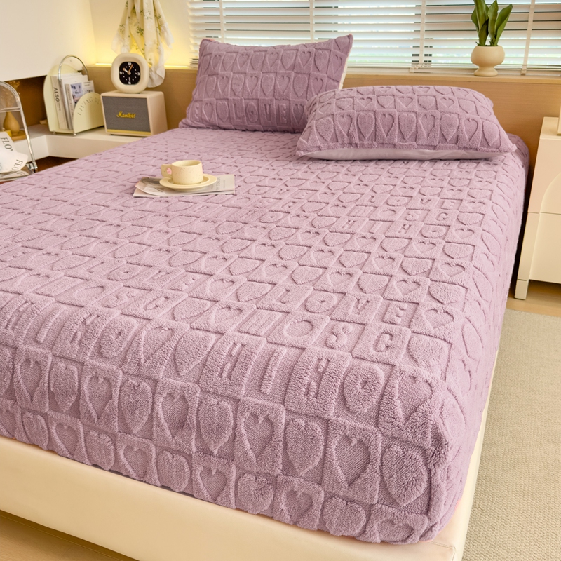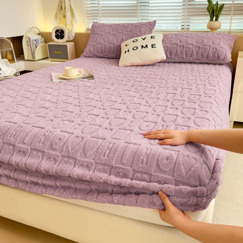 商品名称:希廷顿 2024新款柔暖立体剪花塔芙绒床笠 爱心-香芋紫