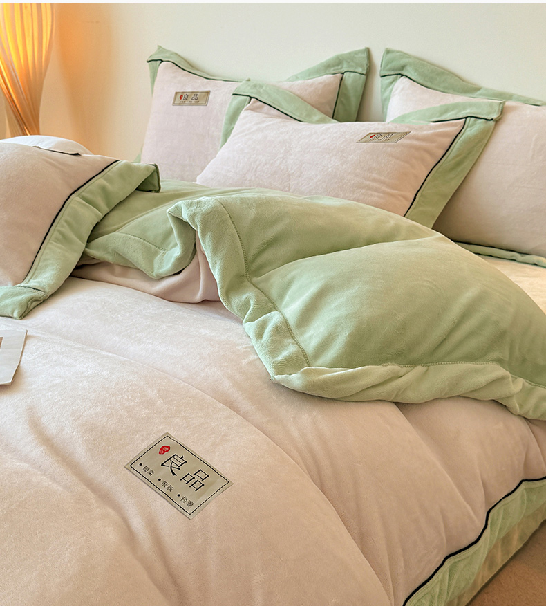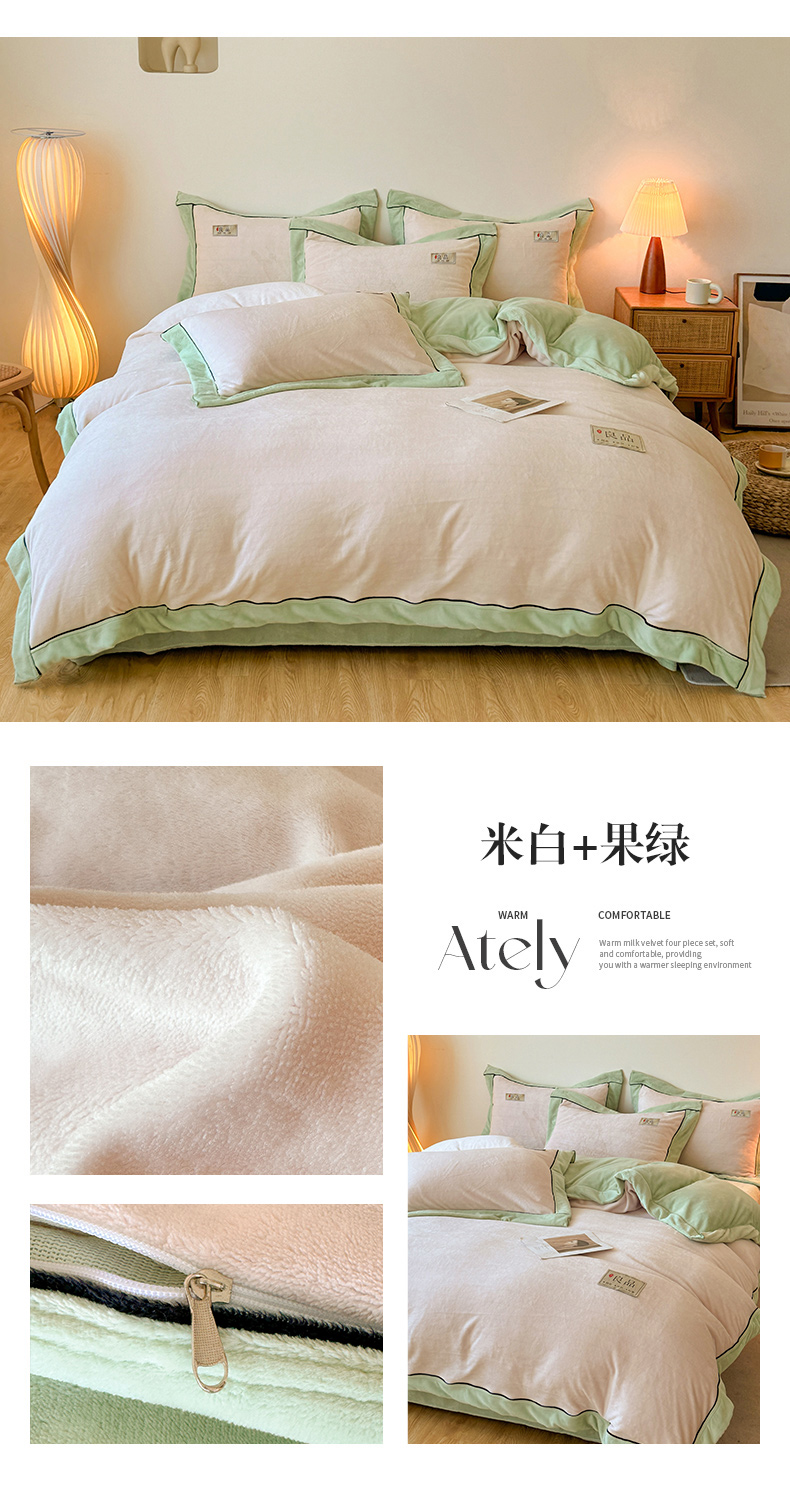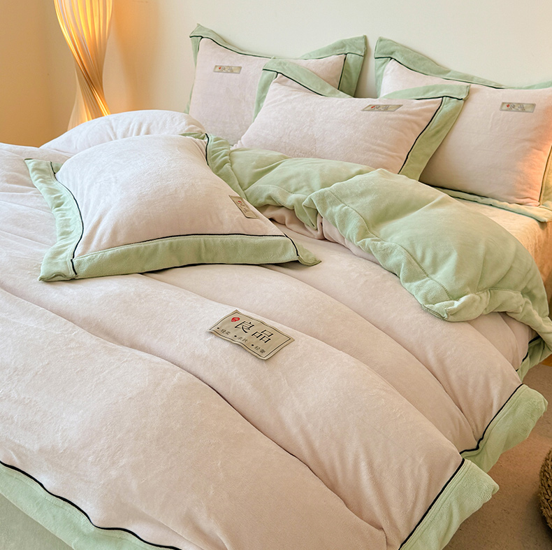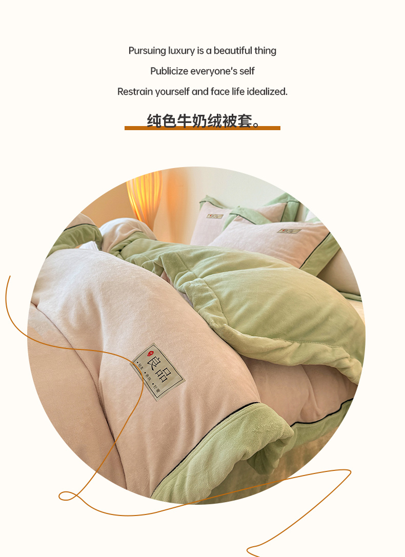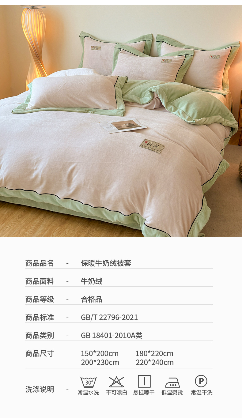 商品名称:全季家居 2024新款A类良品纯色双拼牛奶绒高克重加厚保暖被套单件 米白+果绿