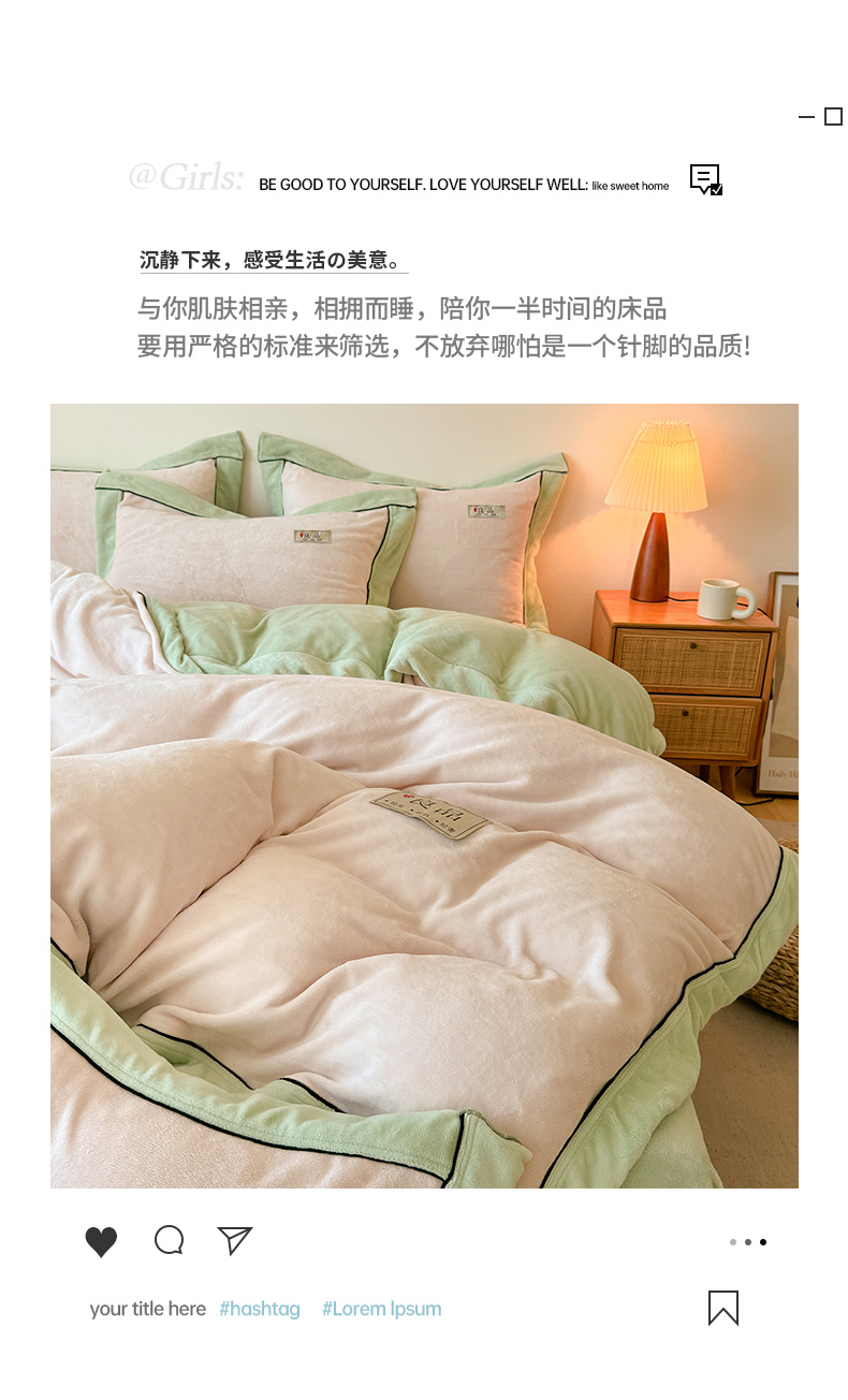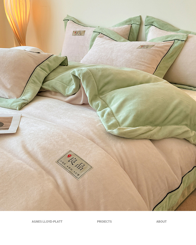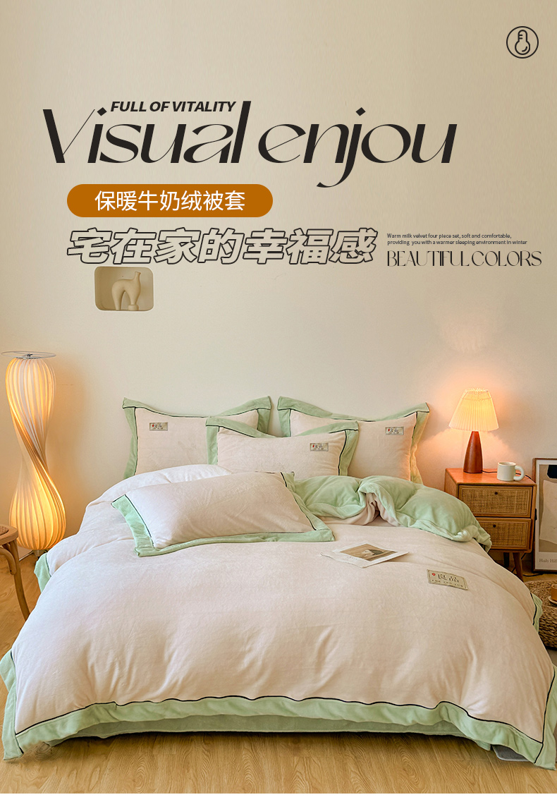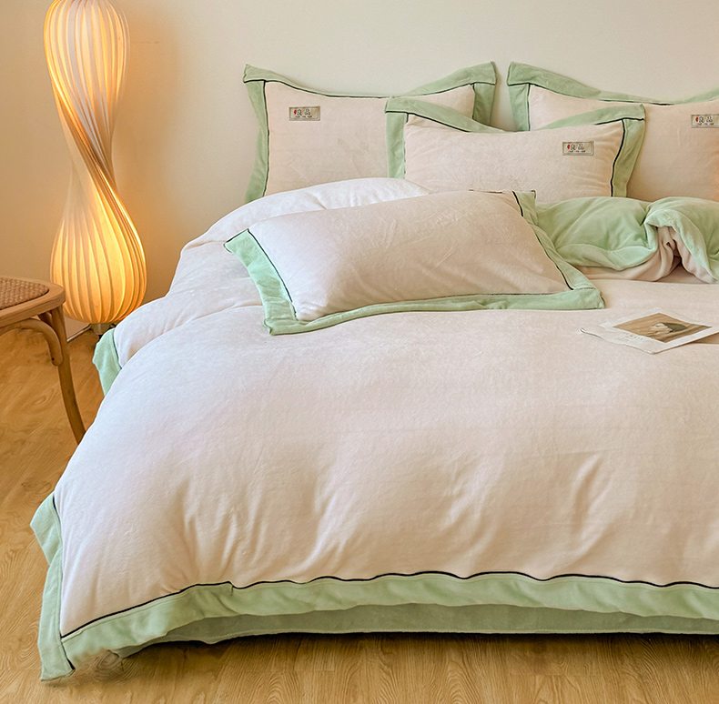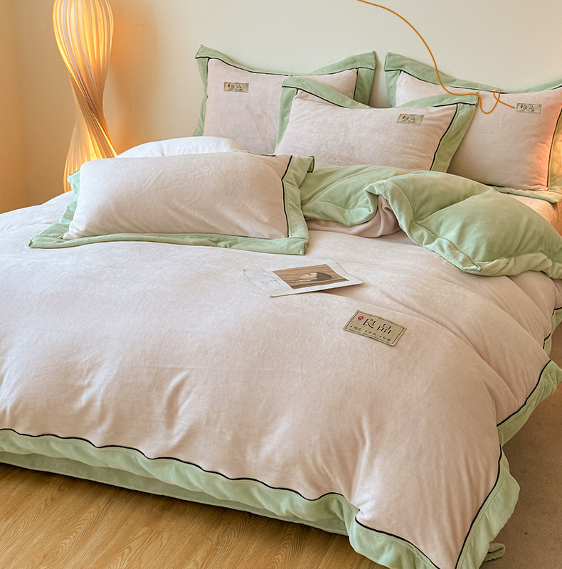 商品名称:全季家居 2024新款A类良品纯色双拼牛奶绒高克重加厚保暖被套单件 米白+果绿