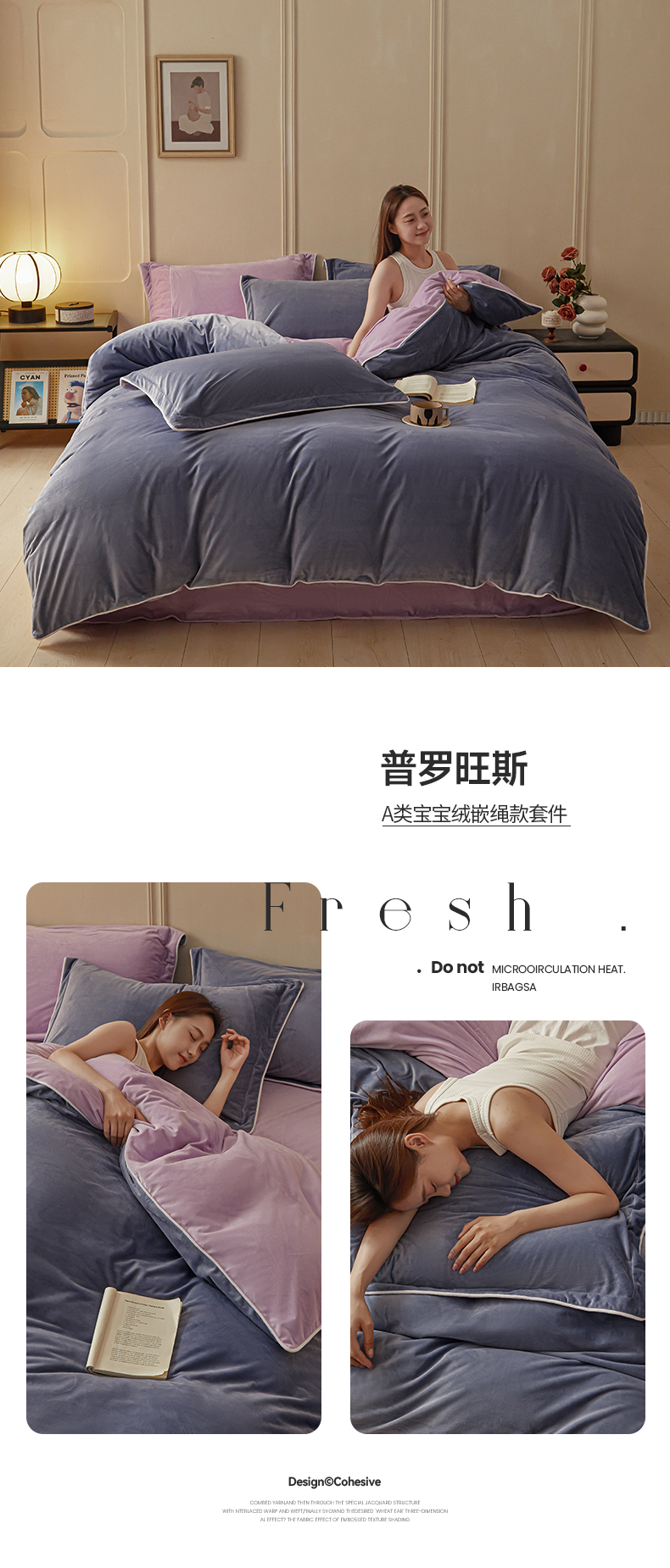 商品名称:澳梵家居 澳梵家居 2024新款A类宝宝绒嵌绳款四件套--【雅致系列】 普罗旺斯