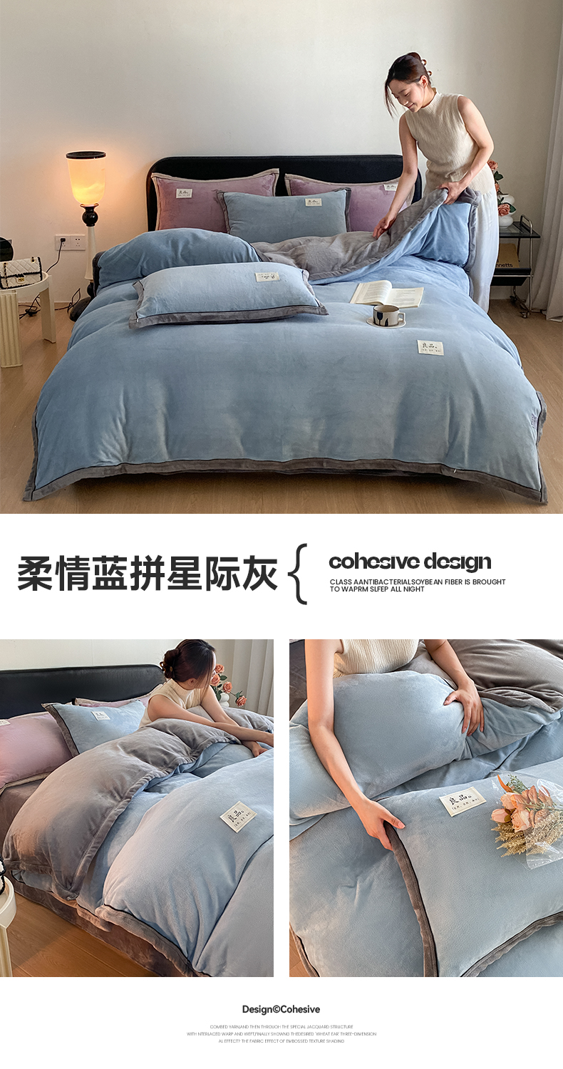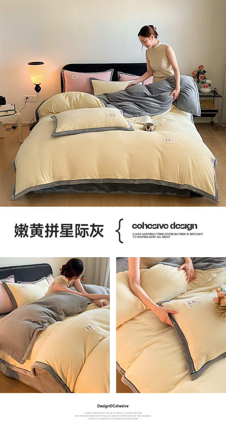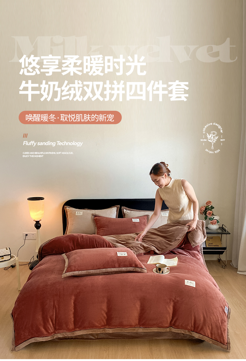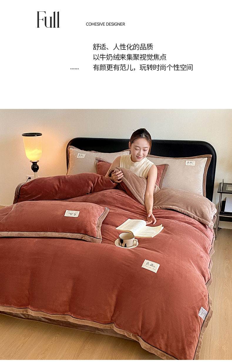 商品名称:(总)澳梵家居 2024新款牛奶绒包边嵌绳款双拼四件套