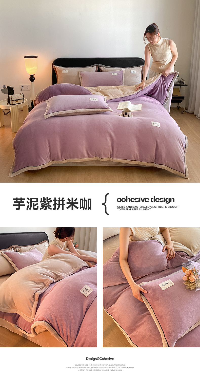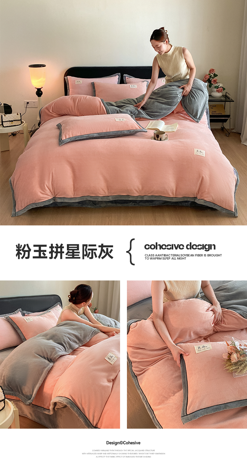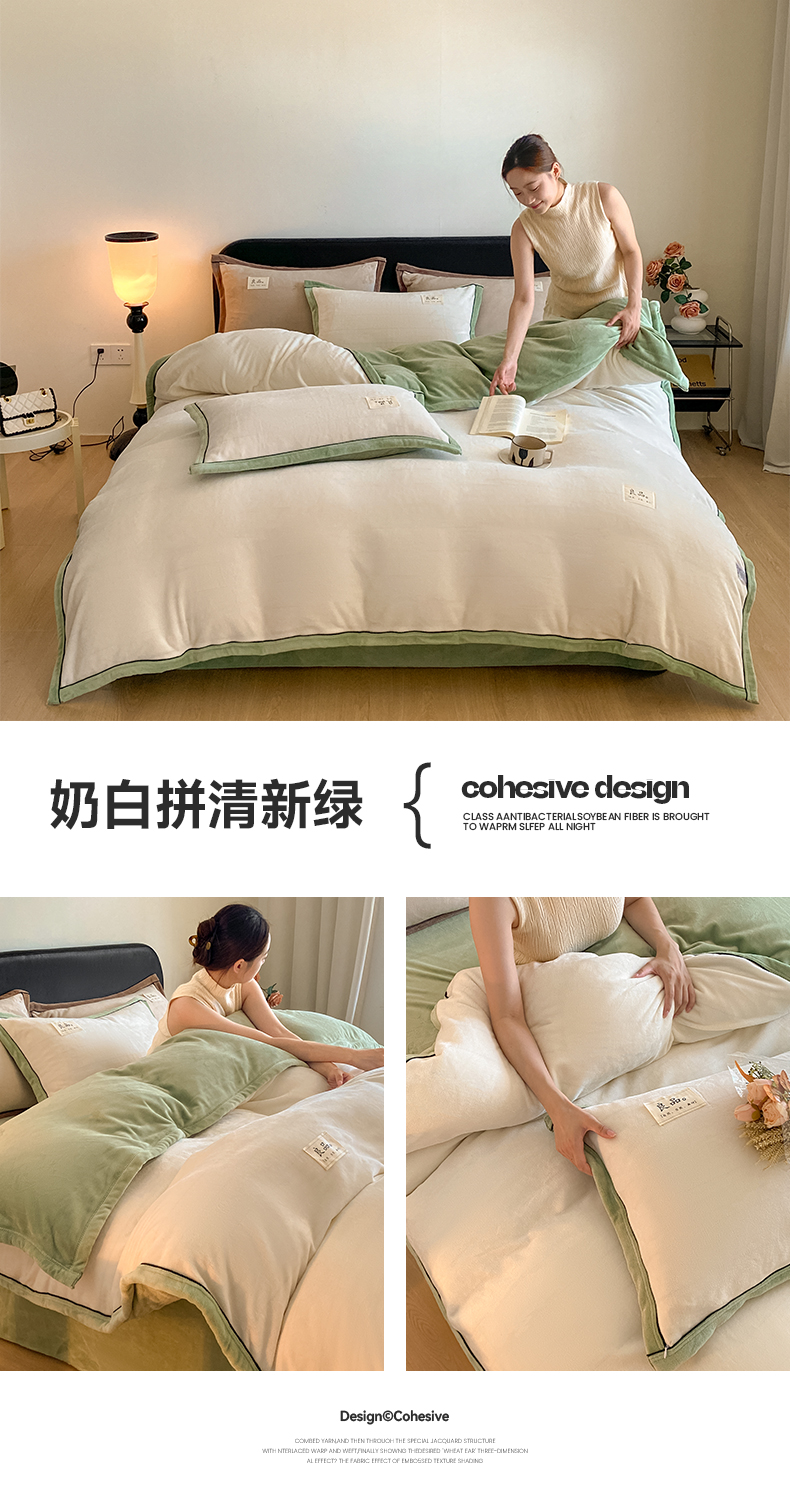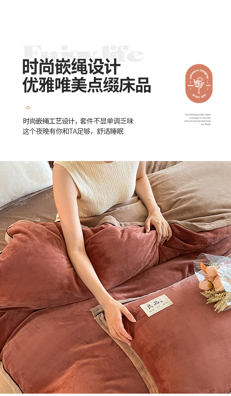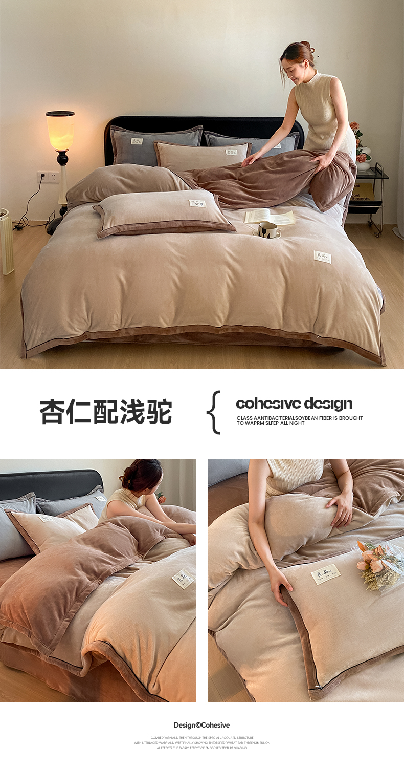 商品名称:(总)澳梵家居 2024新款牛奶绒包边嵌绳款双拼四件套