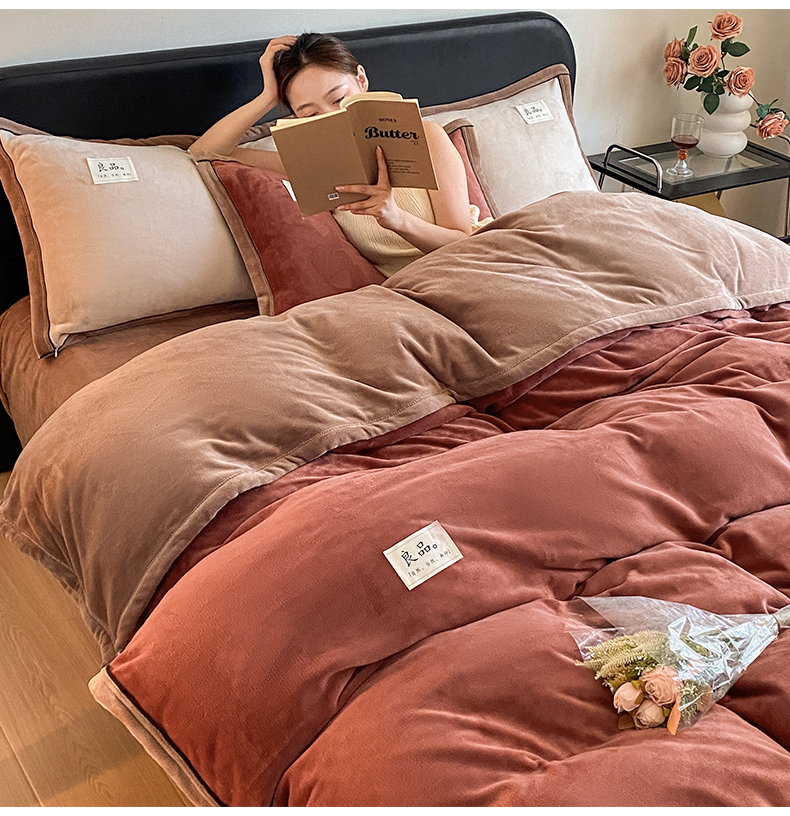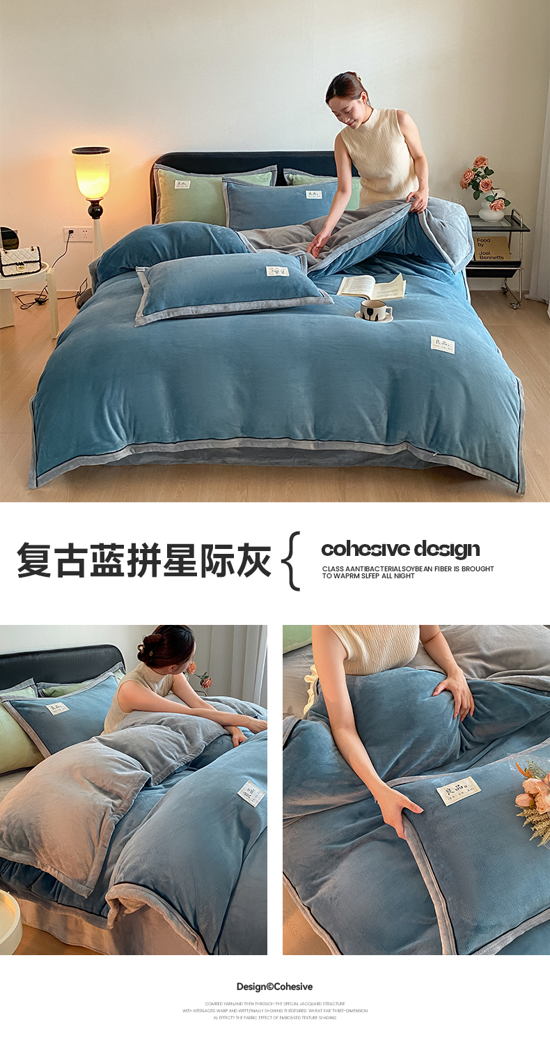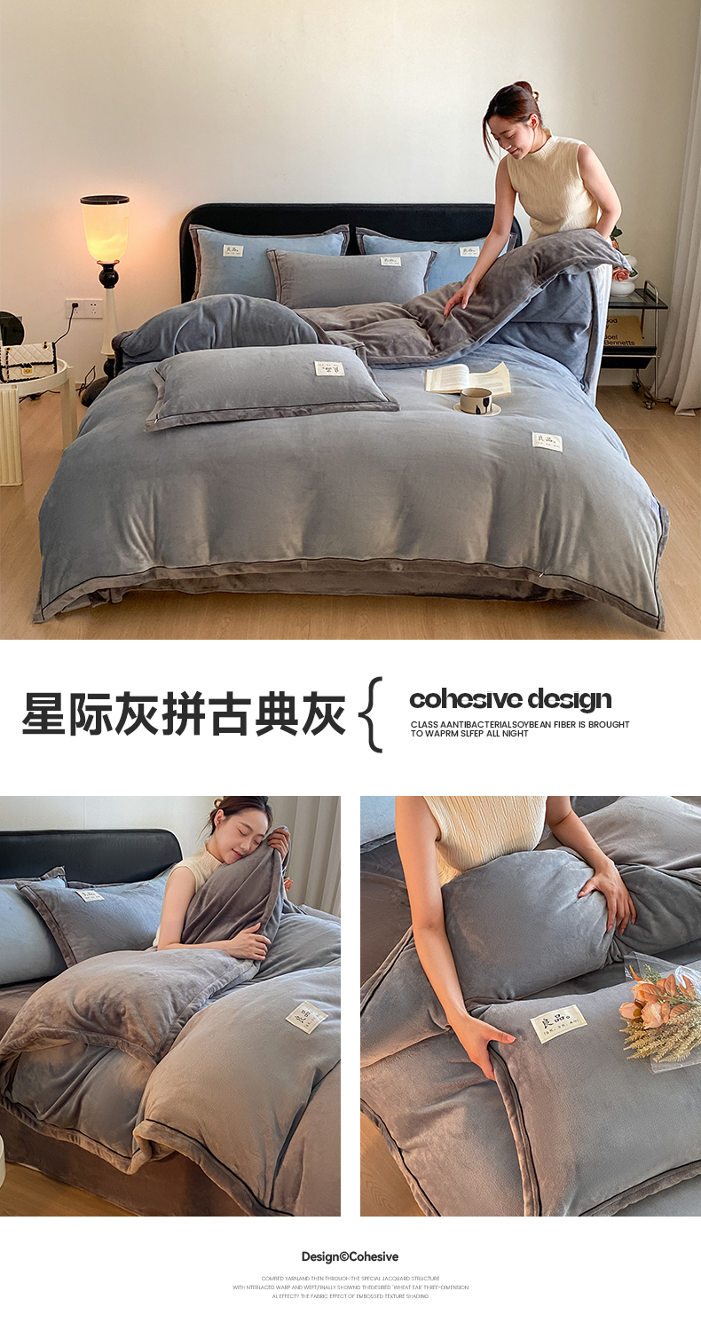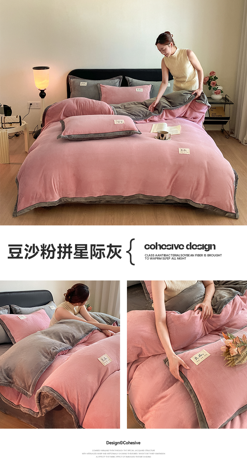 商品名称:(总)澳梵家居 2024新款牛奶绒包边嵌绳款双拼四件套