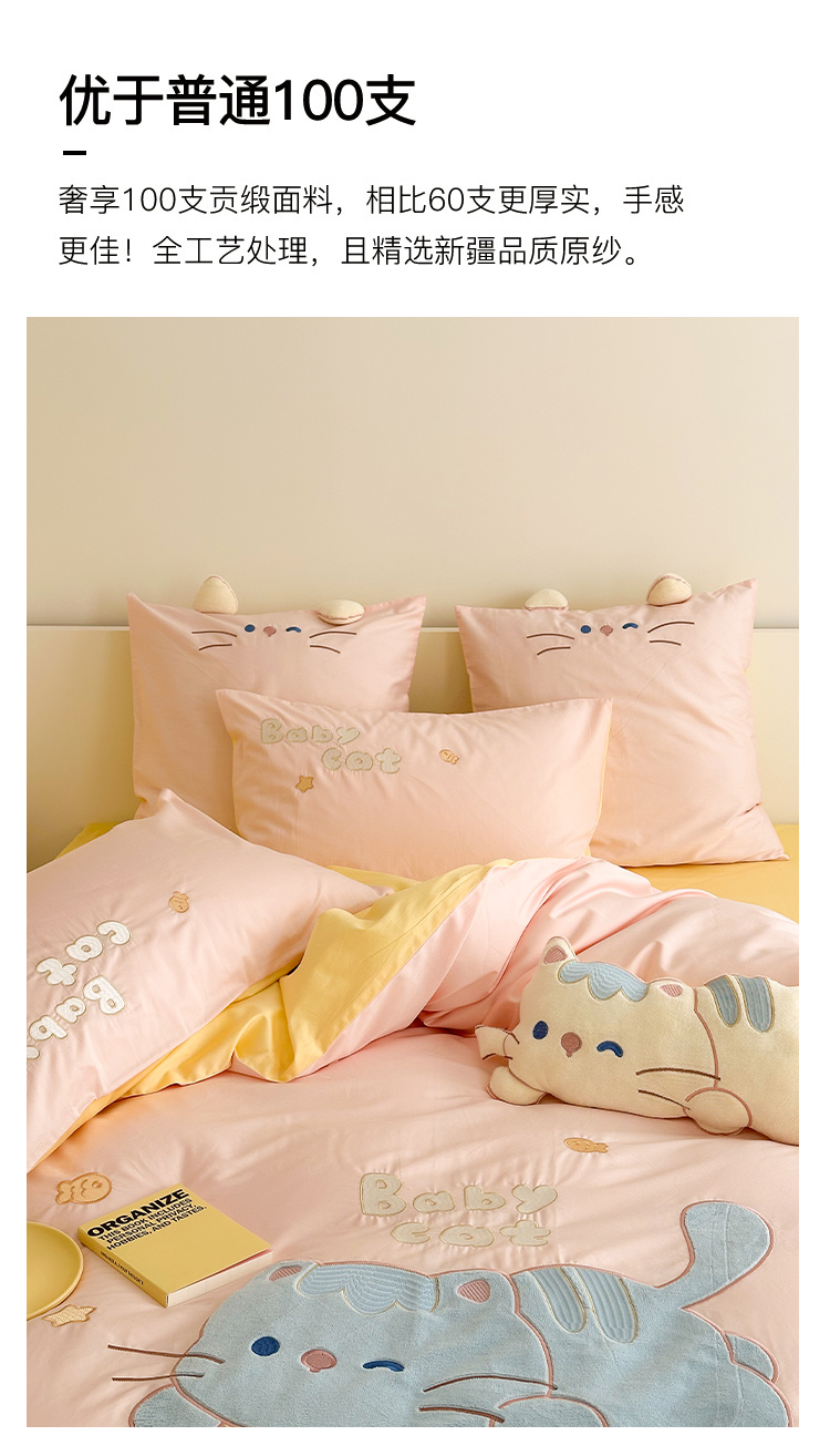 商品名称:(总)2024新款100支澳棉独家专版四件套--小懒猫