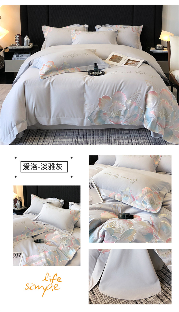 (总)家居1号家纺 2024新款全棉磨毛刺绣四件套-爱洛