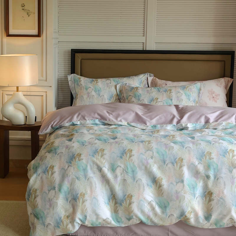 (总)久典家居 2026新款A类全棉纯棉数码印花天丝棉双层纱四件套,锦瑟-咖,锦瑟-绿,锦韵-蓝,锦韵-绿