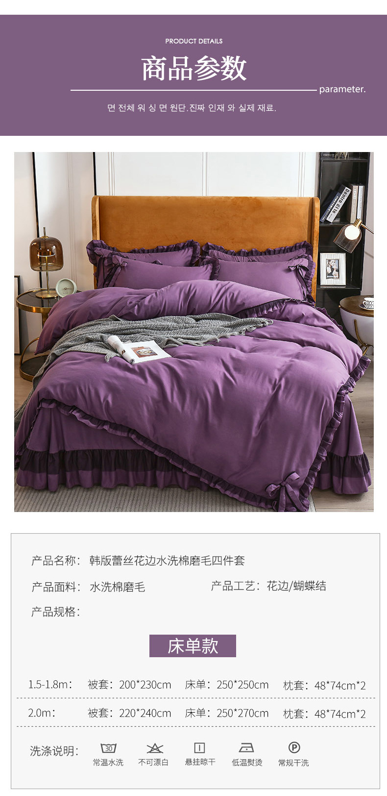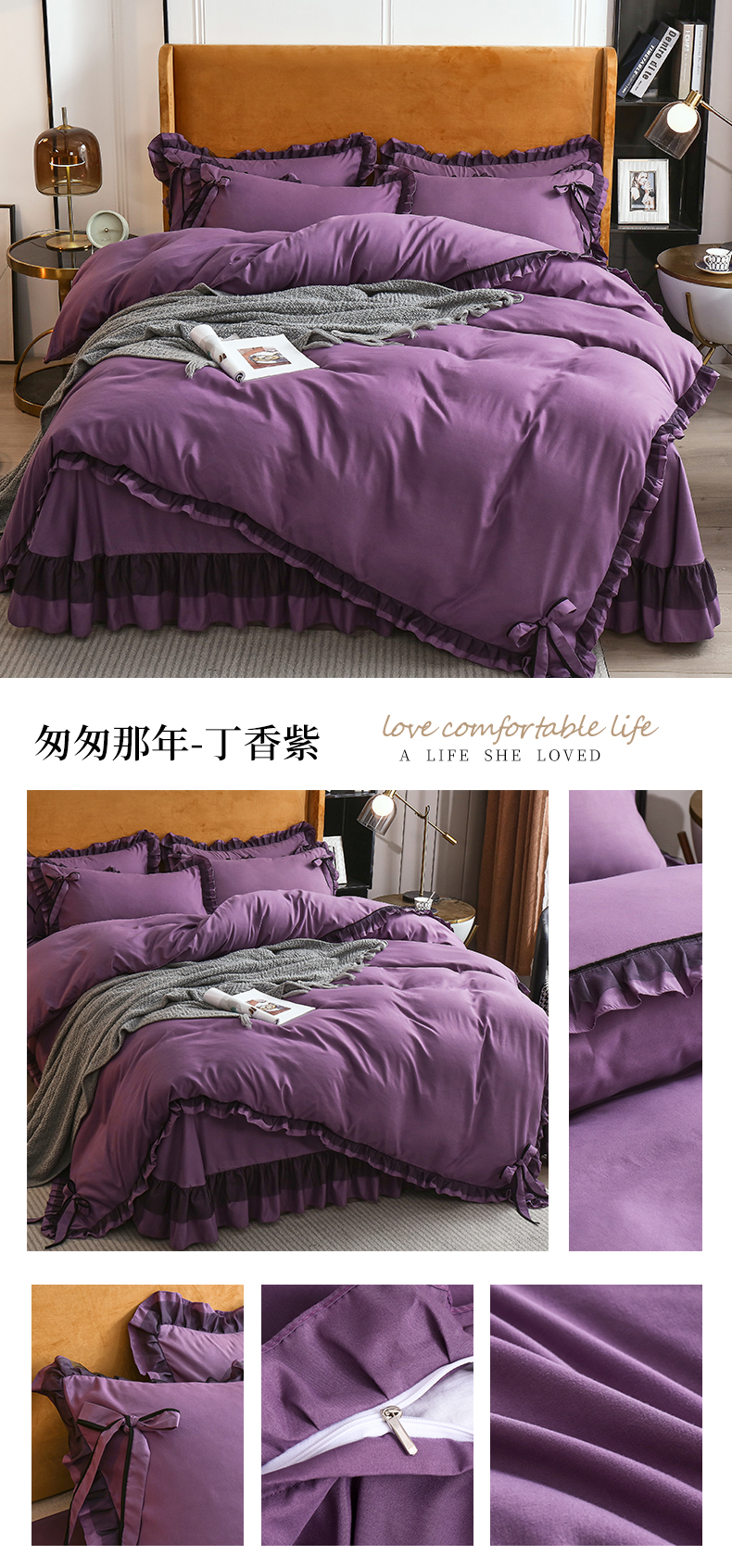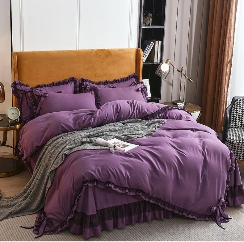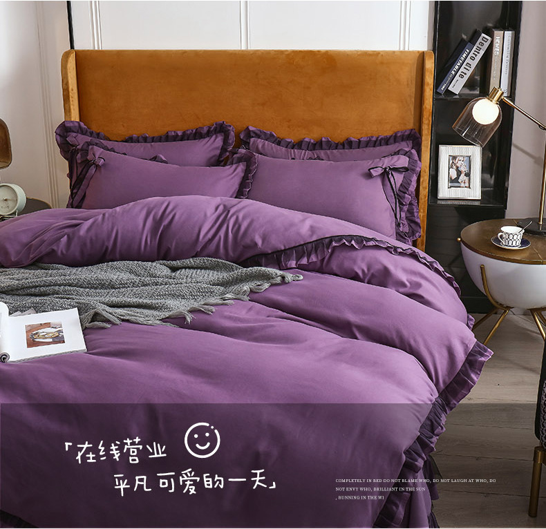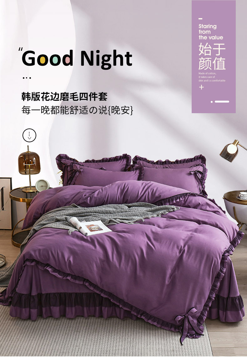 商品名称:兴美佳 2024新款韩版花边磨毛四件套-匆匆那年 匆匆那年丁香紫