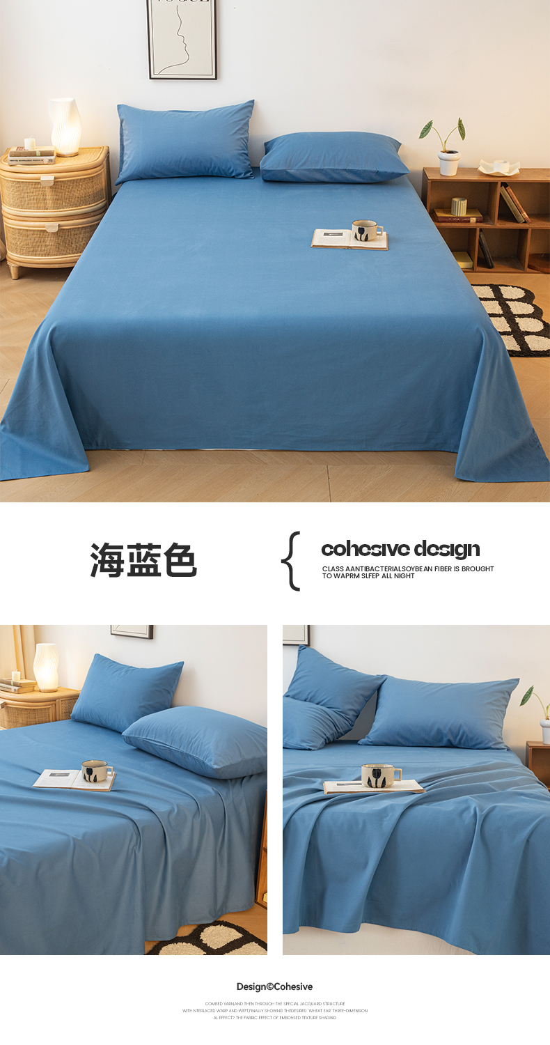• 91家纺网 家纺一手货源 找家纺 寐眠 2024新款全棉磨毛床单枕套 海蓝色