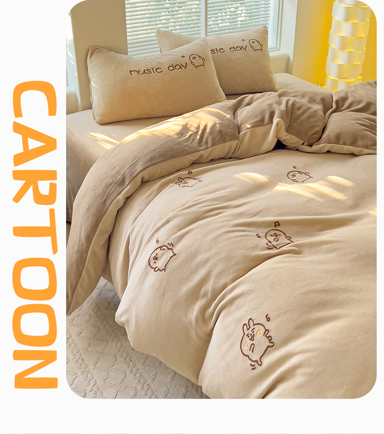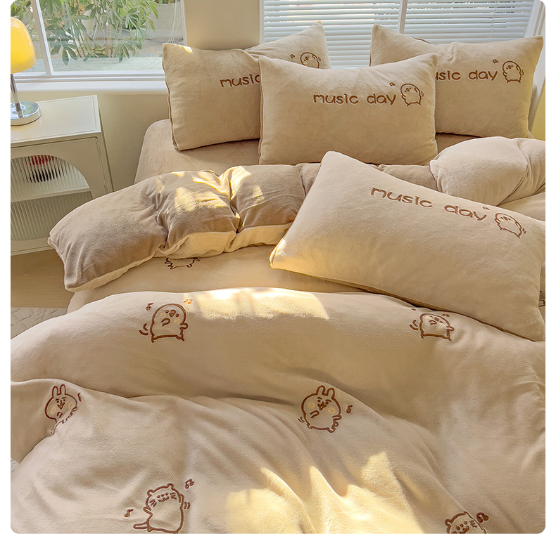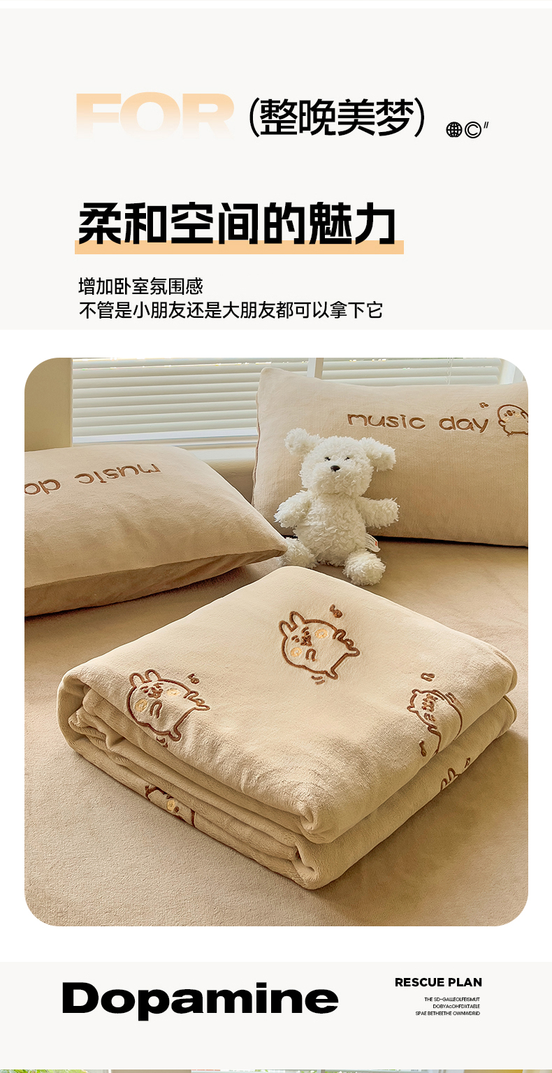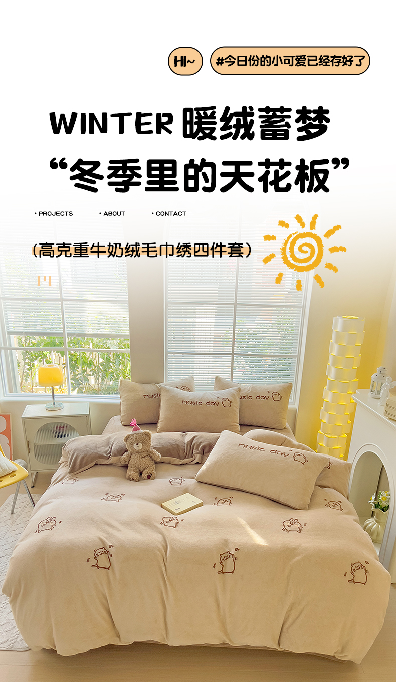 卡普二店 2024新款高克重牛奶绒毛巾绣四件套 音乐聚会