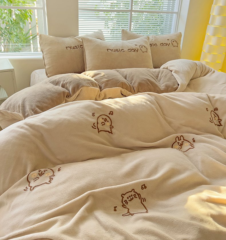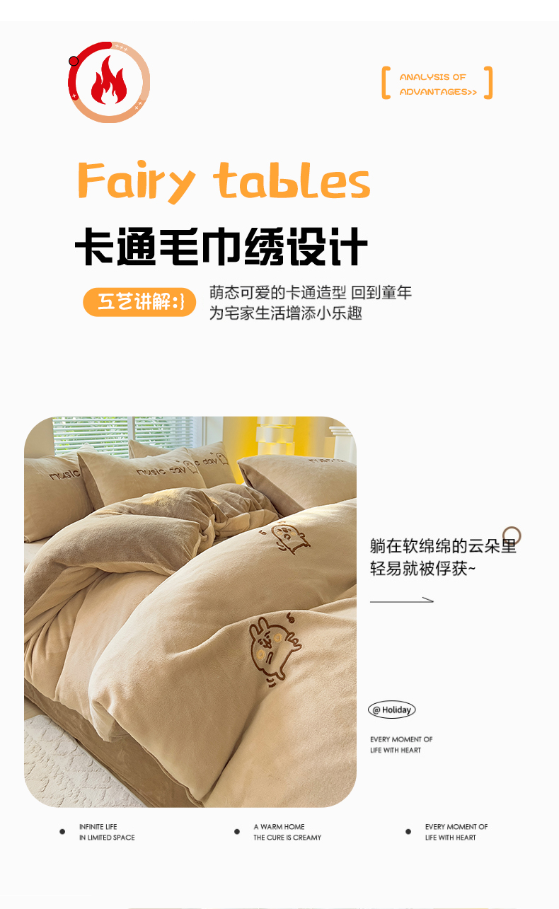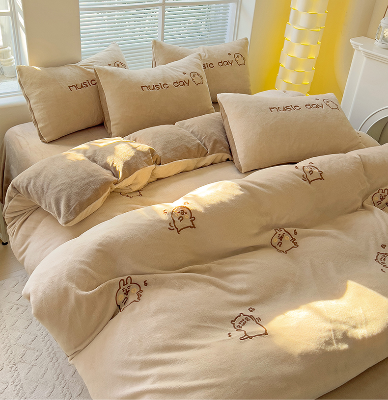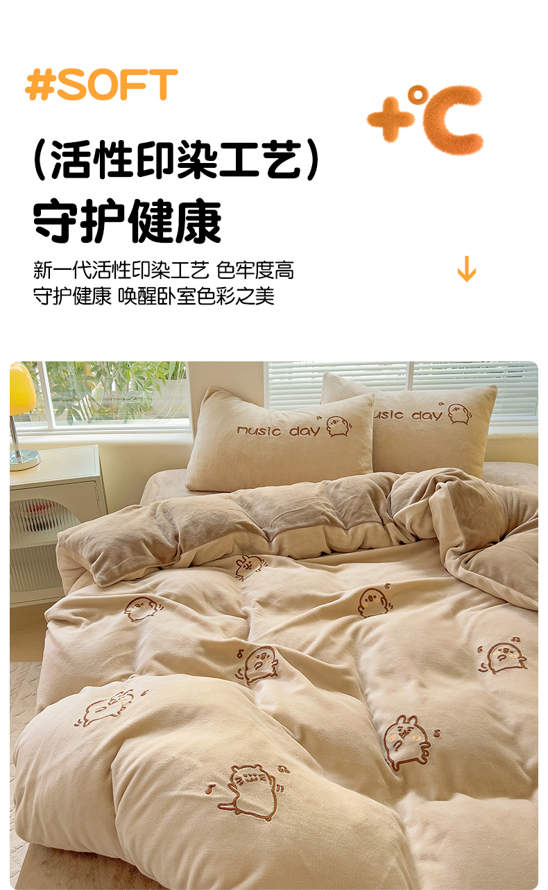 卡普二店 2024新款高克重牛奶绒毛巾绣四件套 音乐聚会