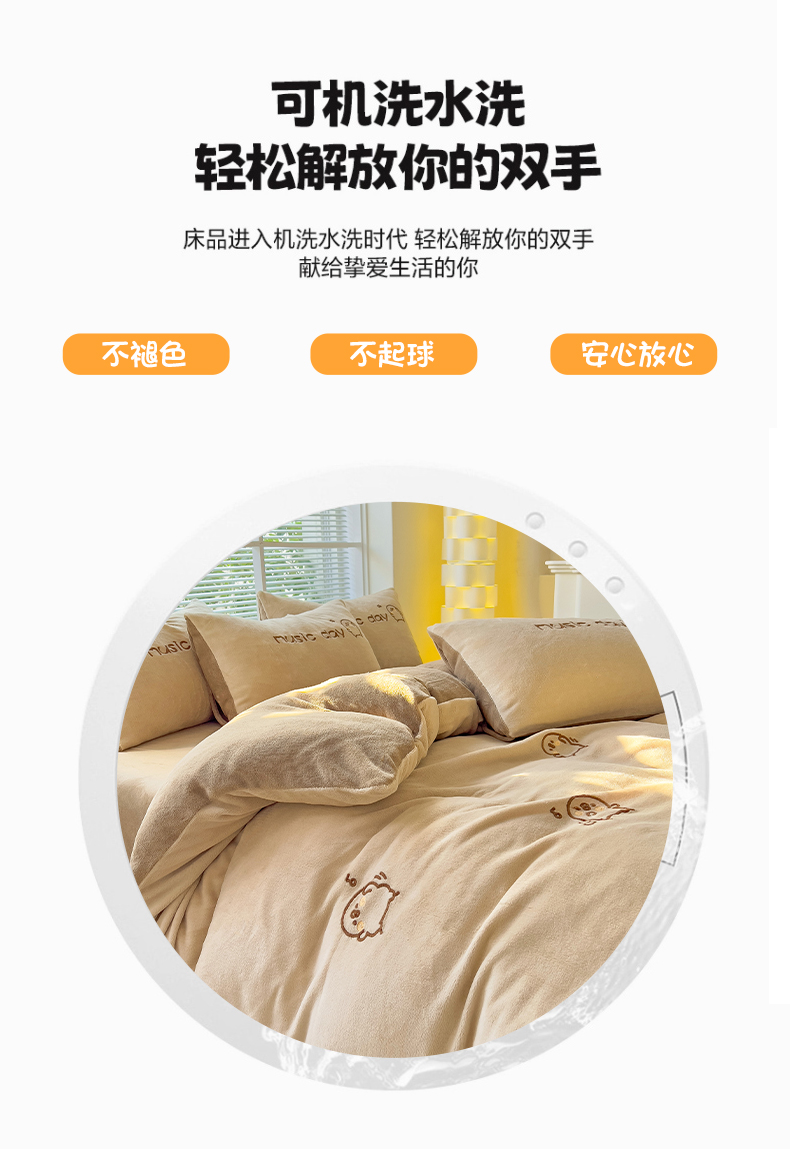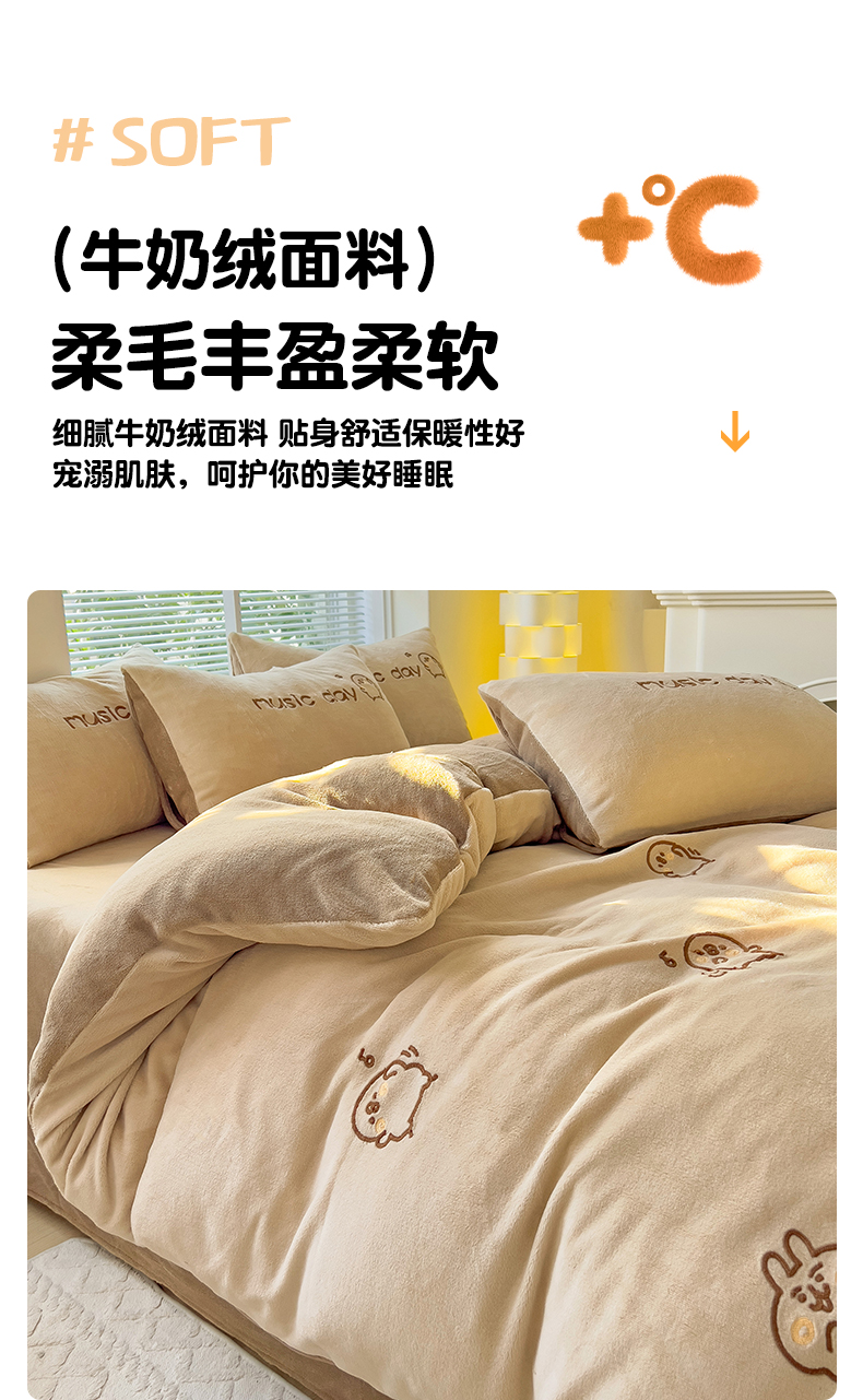 商品名称:卡普二店 2024新款高克重牛奶绒毛巾绣四件套 音乐聚会