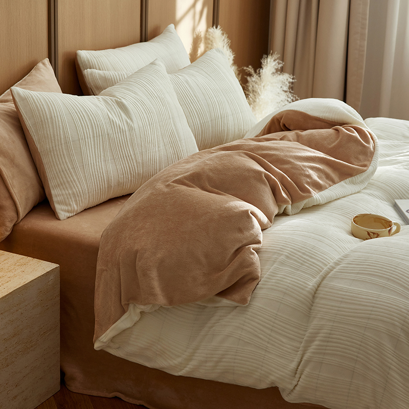 当前位置: 91家纺网 > 商品网购 > 床品套件 > 四件套 > 牛奶绒四件套 > 风向标家纺 2024新款全消光牛奶绒立体雕花曲纹四件套 提花绒曲-老钱棕