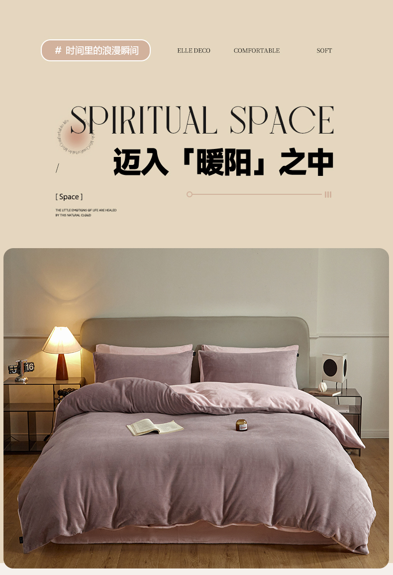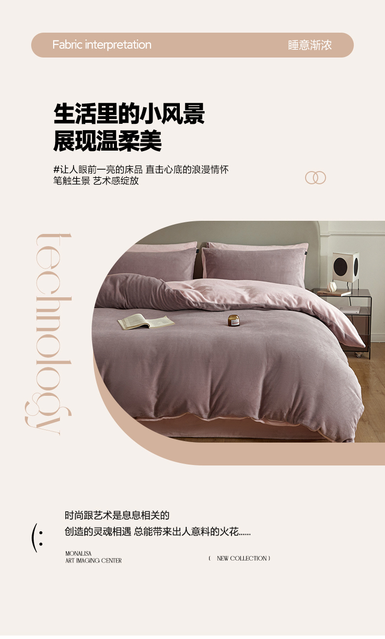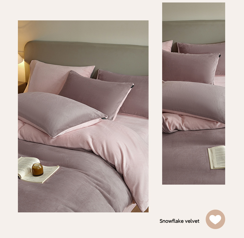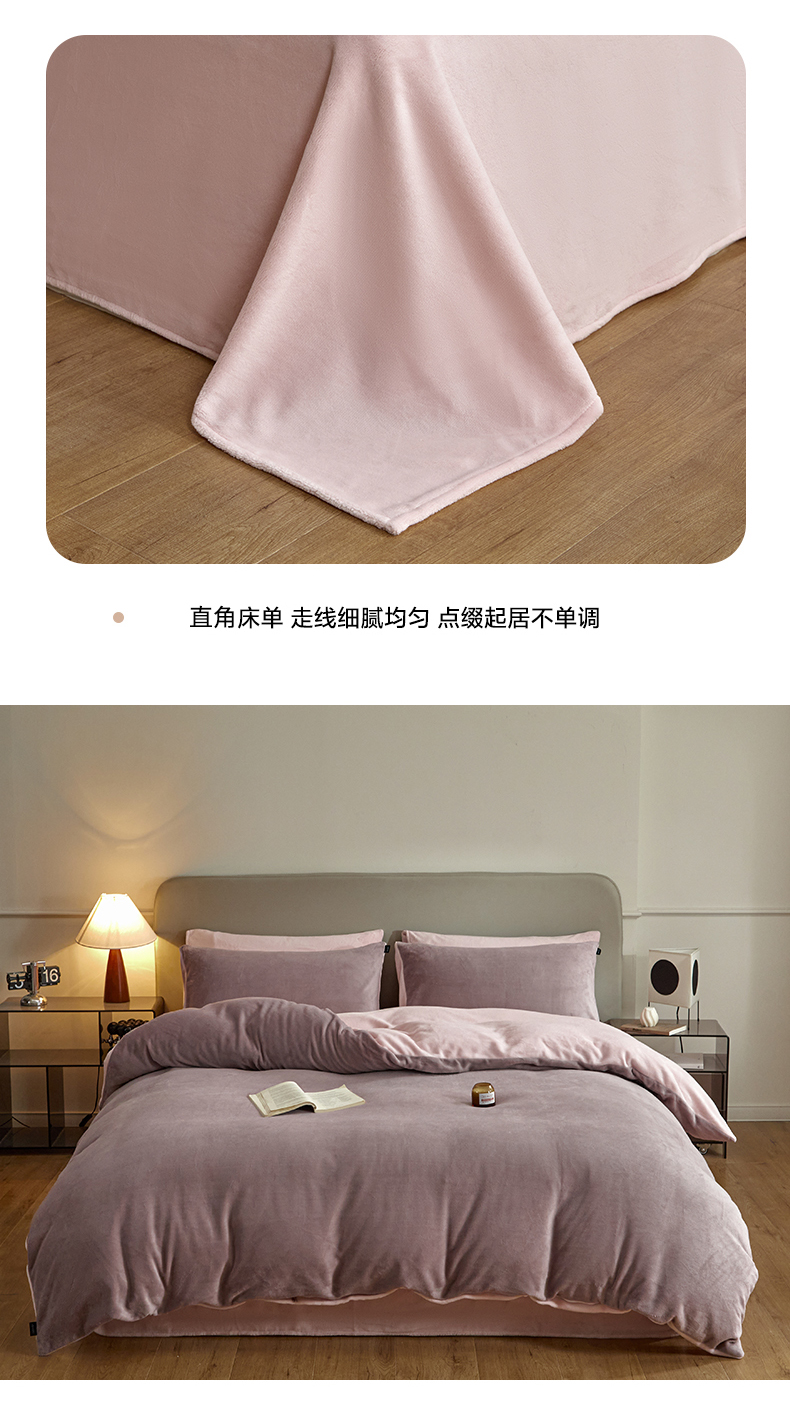 商品名称:凡客家居 2024新款A类加厚230克纯色双拼牛奶绒四件套 香芋紫+浅粉
