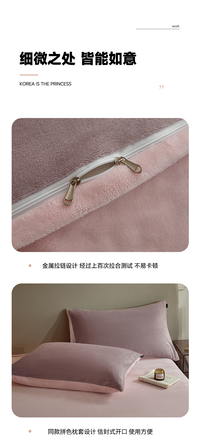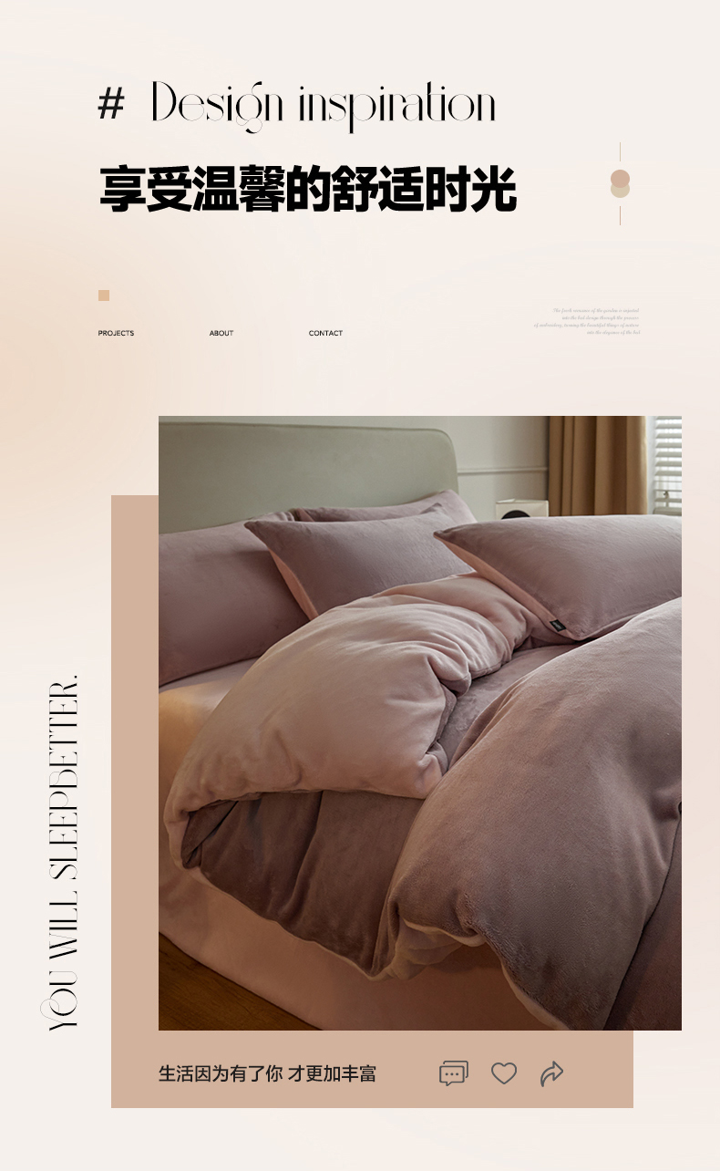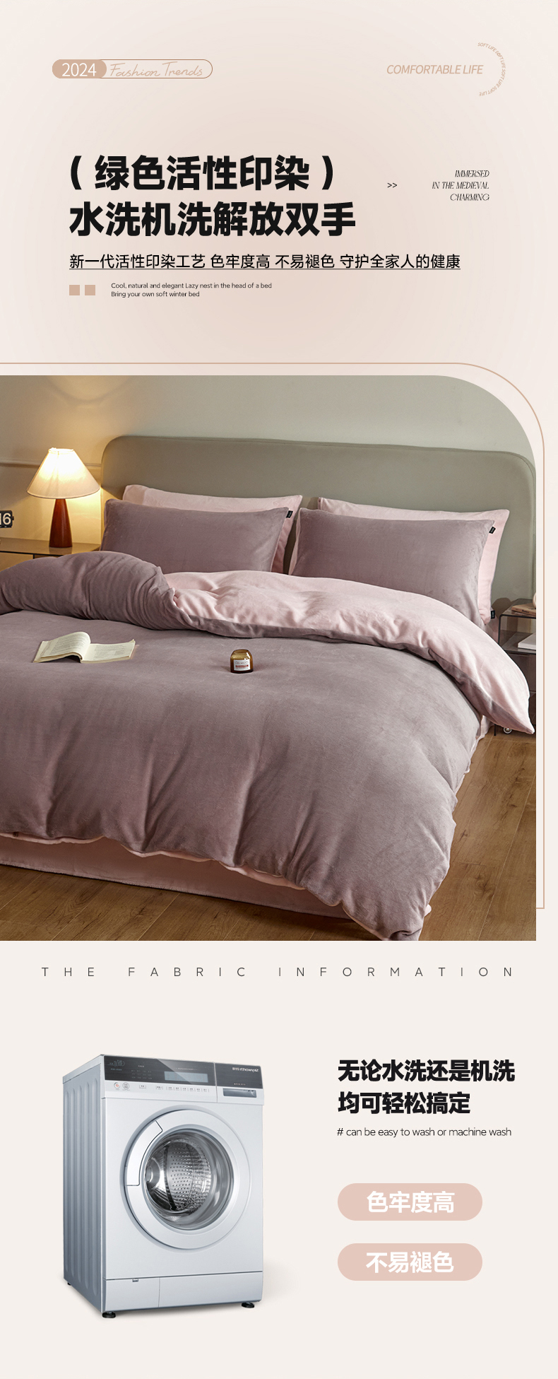 商品名称:凡客家居 2024新款A类加厚230克纯色双拼牛奶绒四件套 香芋紫+浅粉