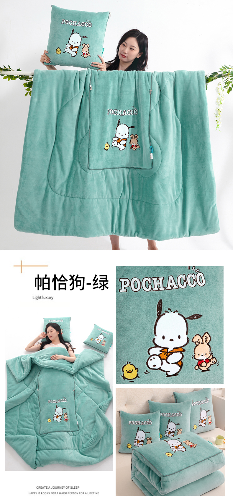 商品名称:2024新款三丽欧牛奶绒抱枕被 帕恰狗-绿