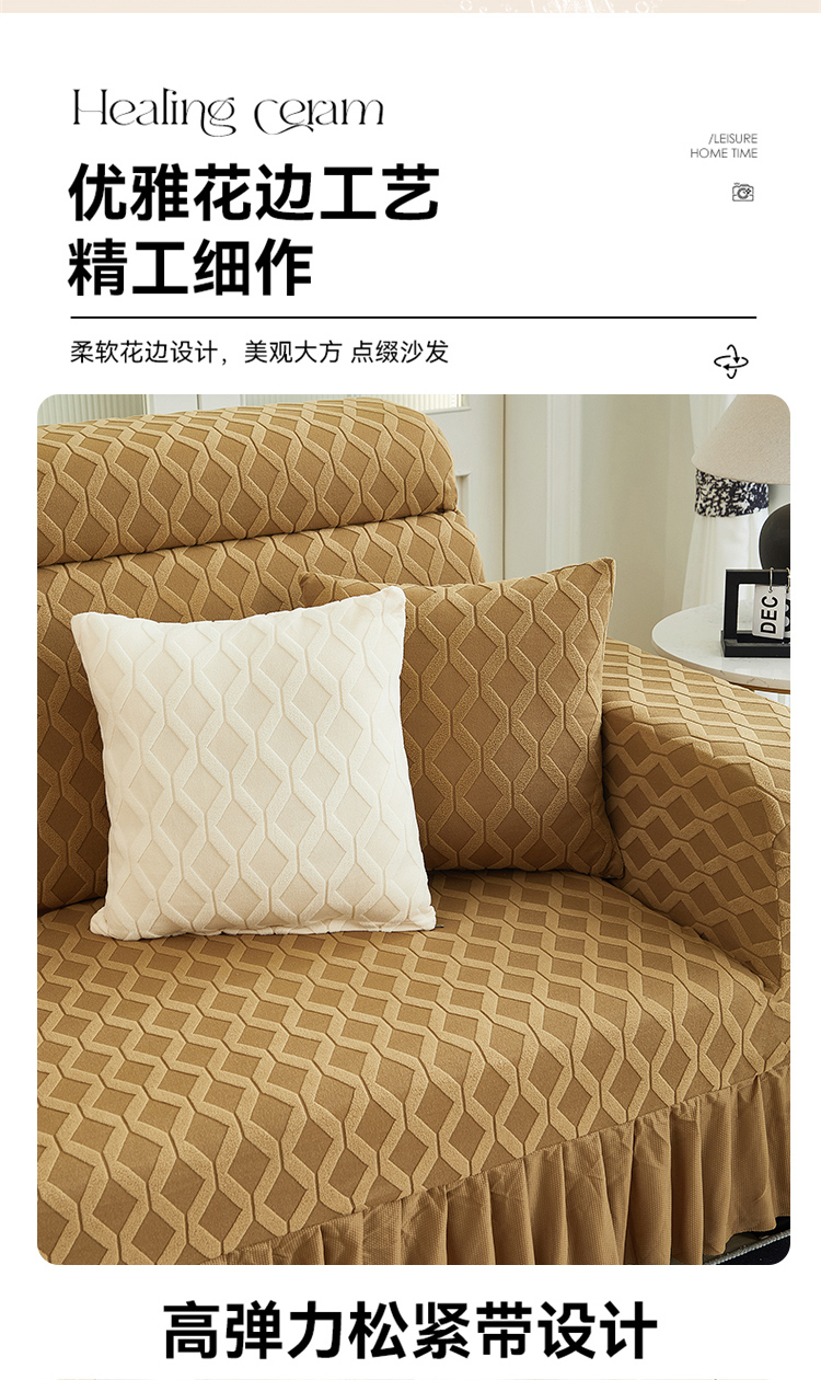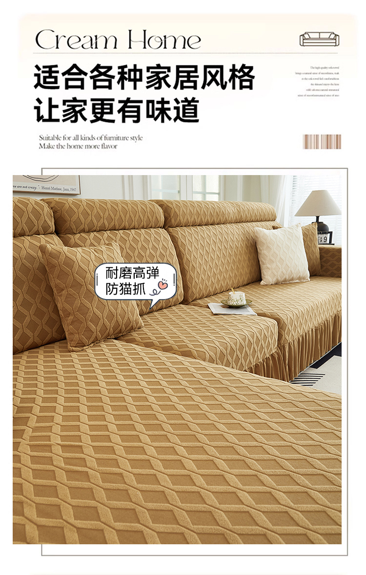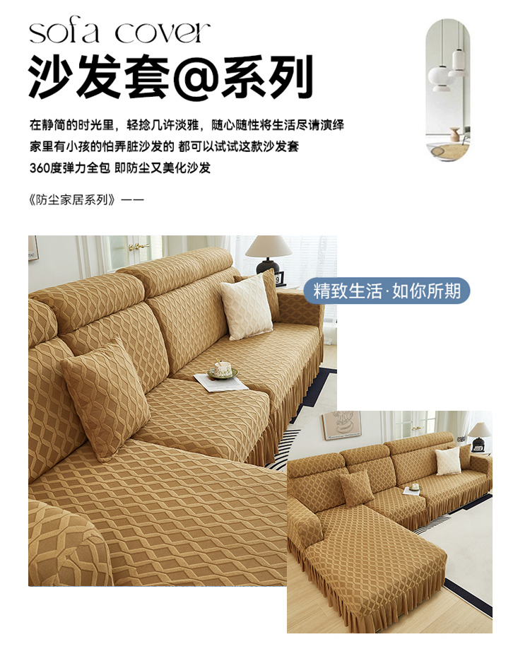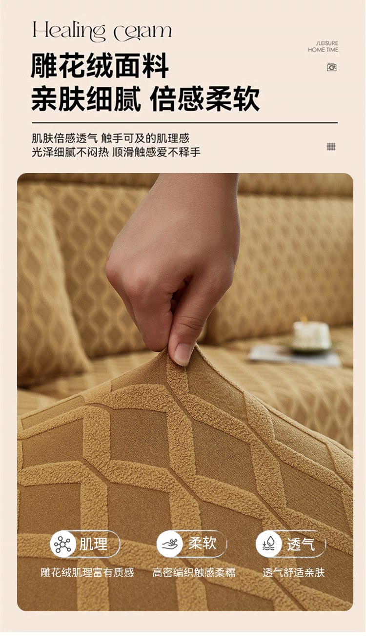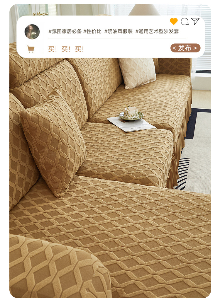 当前位置: 91家纺网 > 商品网购 > 居家布艺 > 坐垫/椅垫/沙发垫 > 沙发垫 > 2024新款加厚高弹拉花绒全包防尘沙发套罩-菱形格系列 咖色