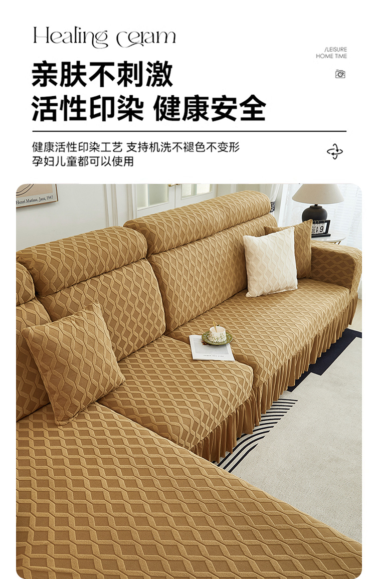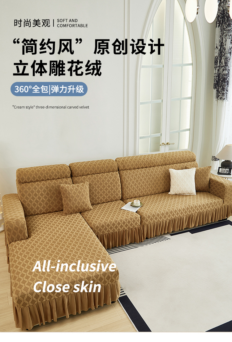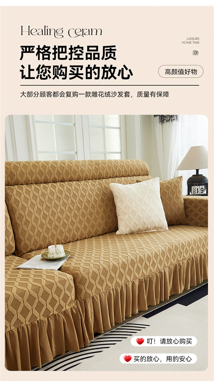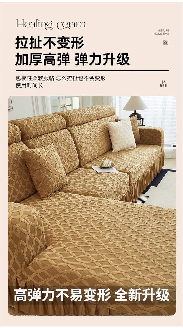 当前位置: 91家纺网 > 商品网购 > 居家布艺 > 坐垫/椅垫/沙发垫 > 沙发垫 > 2024新款加厚高弹拉花绒全包防尘沙发套罩-菱形格系列 咖色